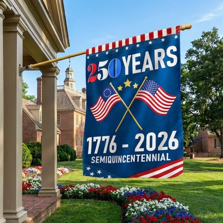 250 Years Semiquincentennial American Flag, Patriotic 1776 2026 Grommet Flag$49.95 USD$59.99 USDDescribe your product