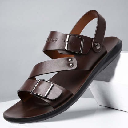 Kaegreel Men Summer Comfortable Leather Barefoot Sandals