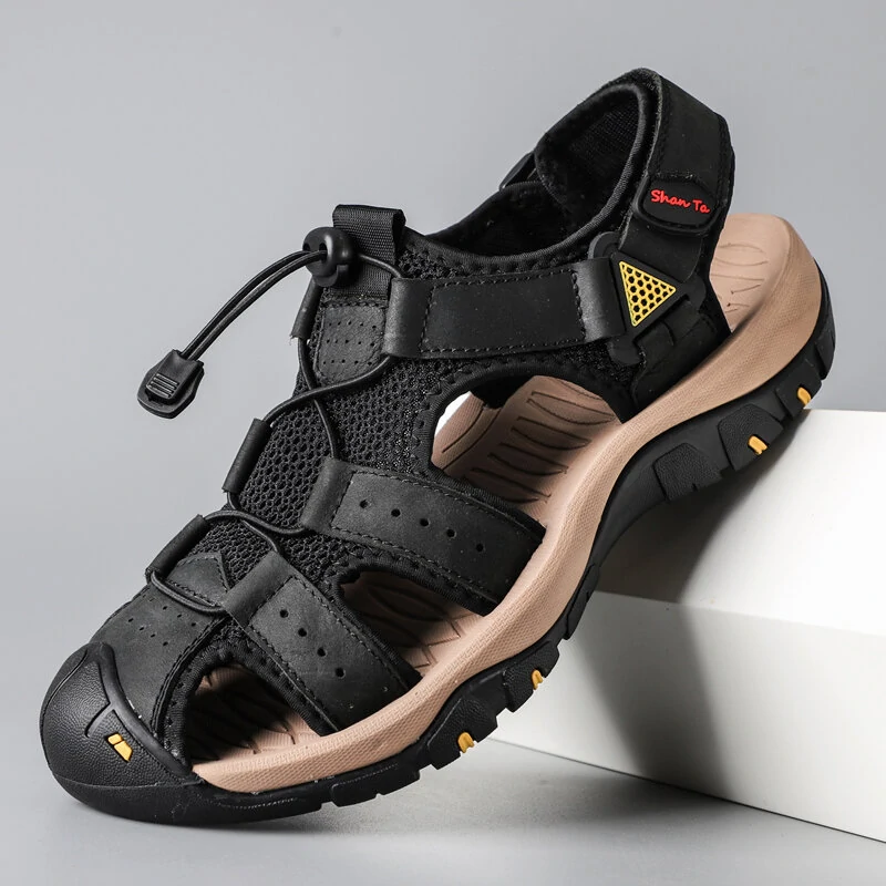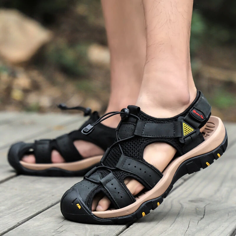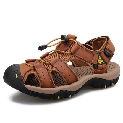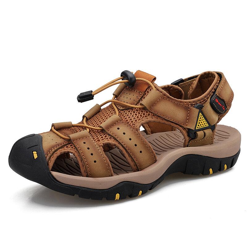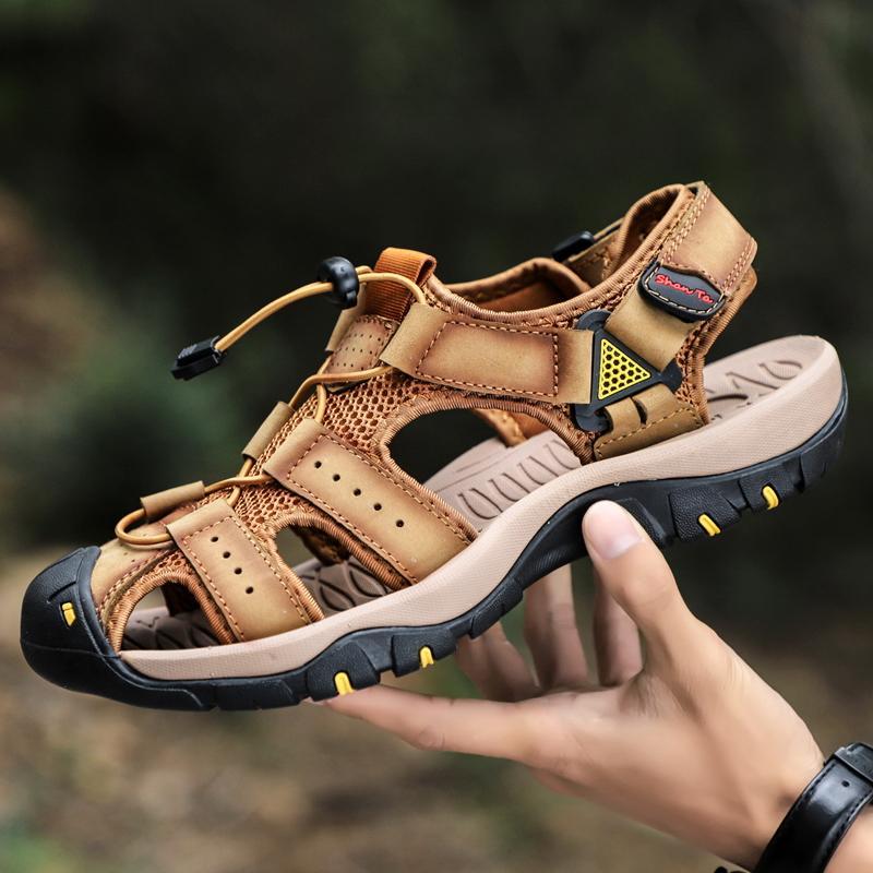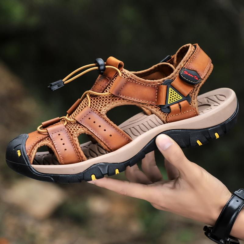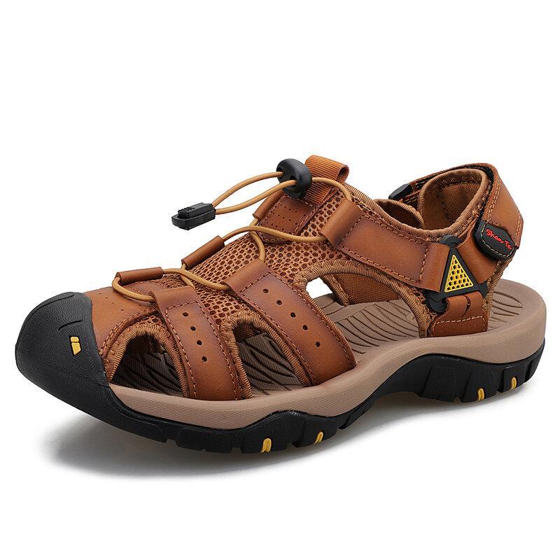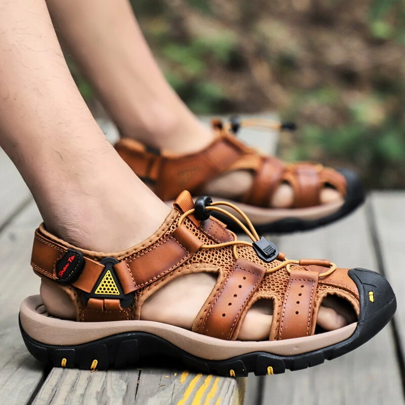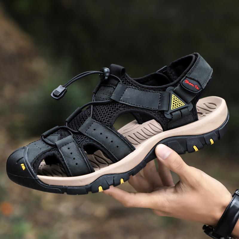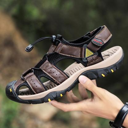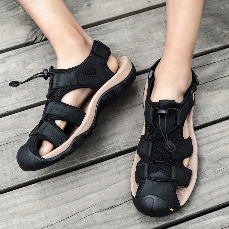 Men Cowhide Breathable Non-Slip Soft Bottom Comfortable Outdoor Casual Beach Sandals