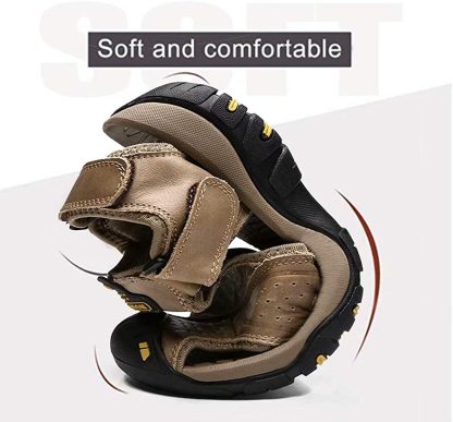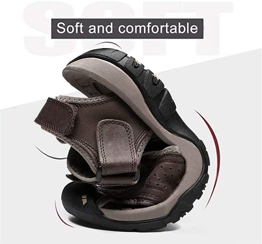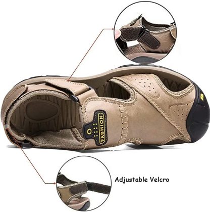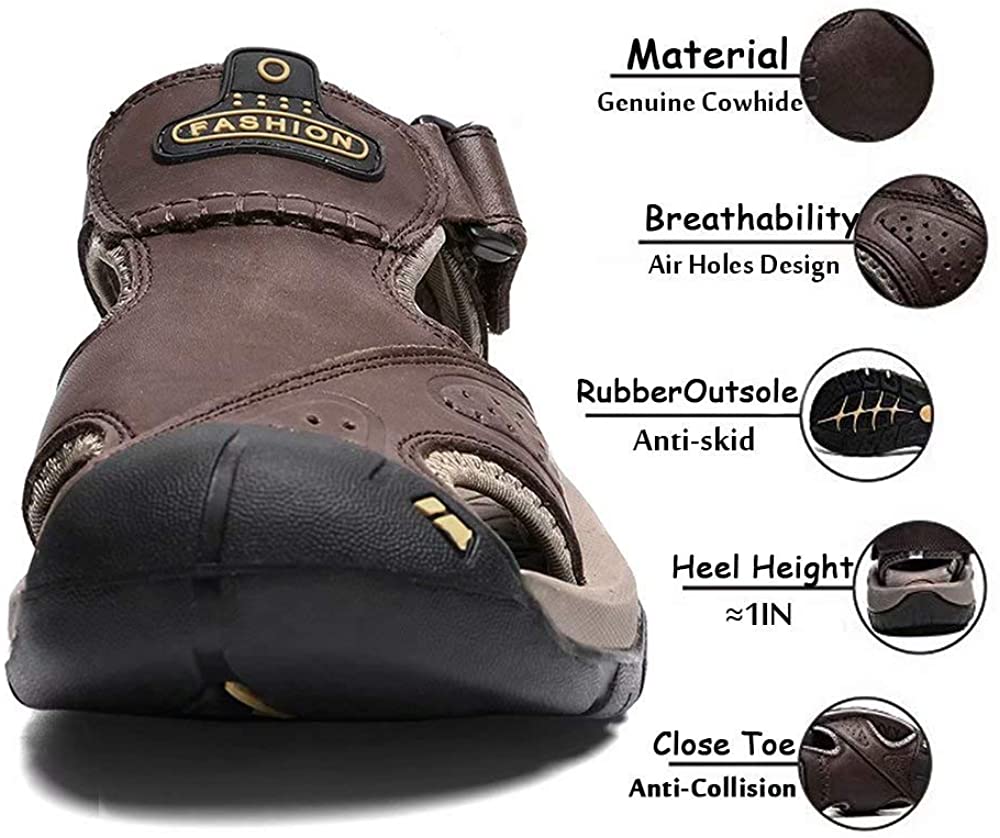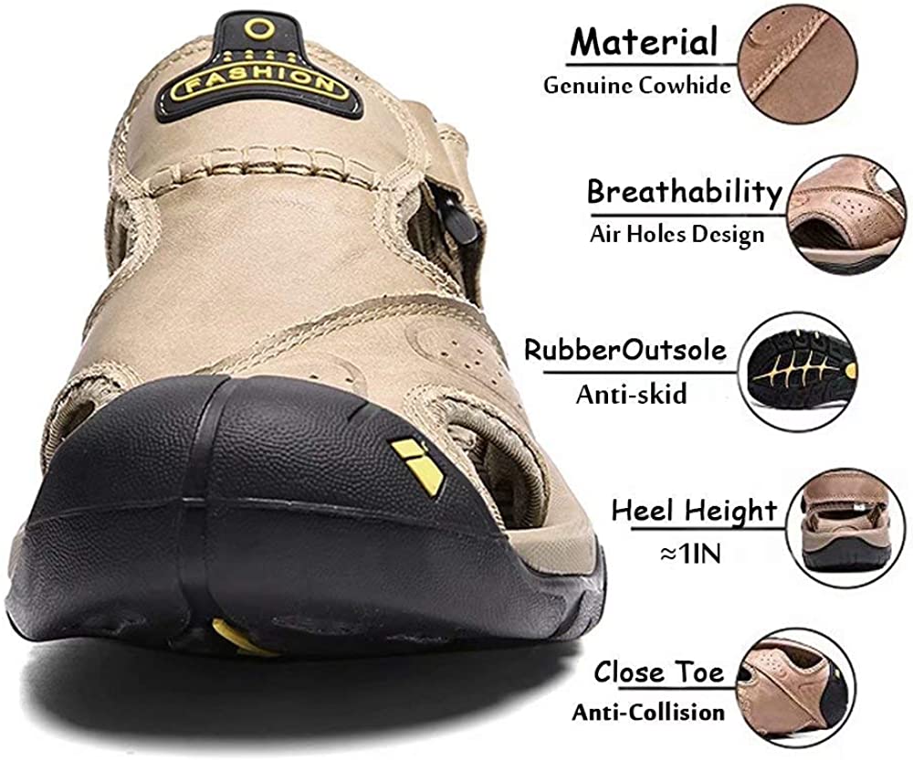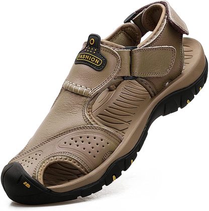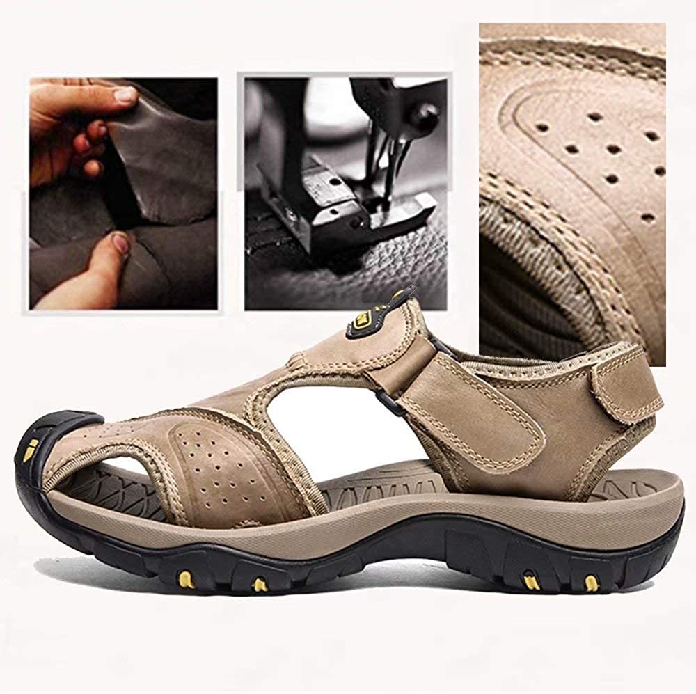 Men's Leather Sandals Outdoor Hiking Sandals Waterproof Athletic Sports Sandals Fisherman's Beach Shoes Closed Toe Water Sandals