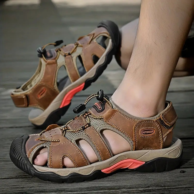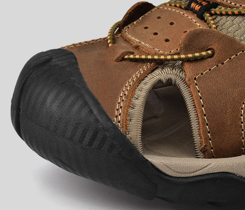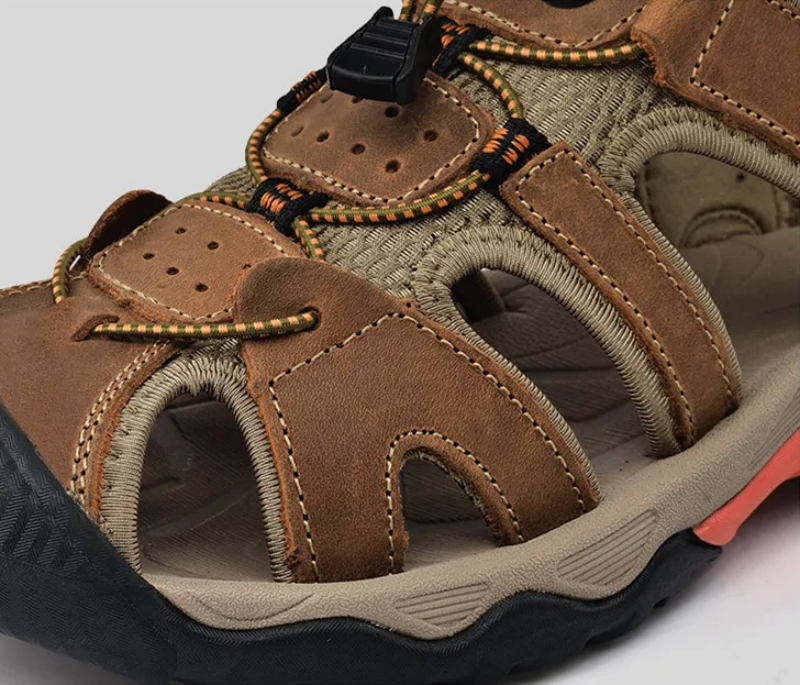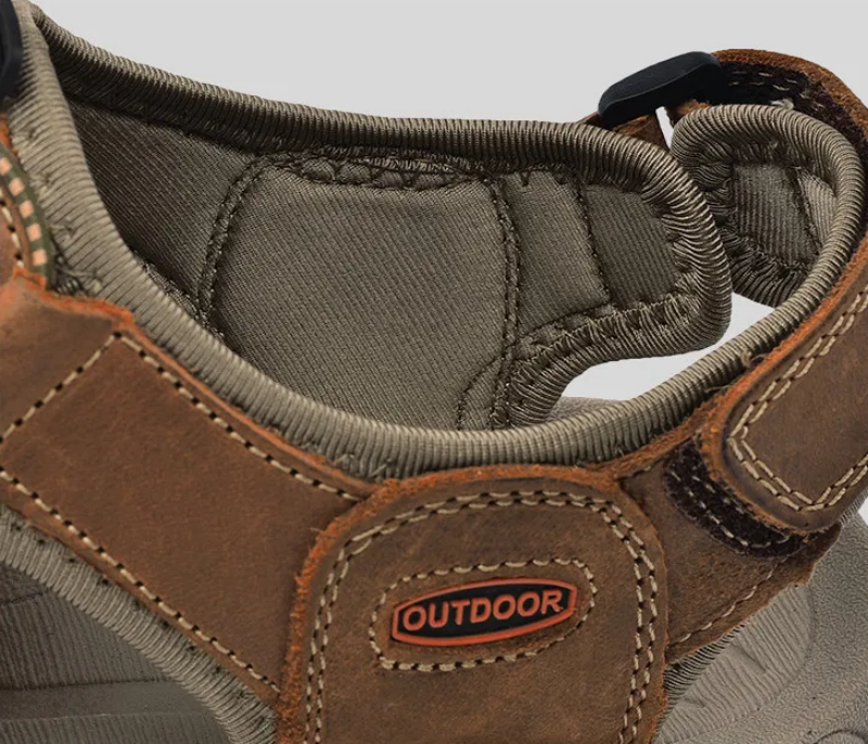 Dallader Men's Genuine Leather Sports Sandals, Orthopedic Support, Comfortable Lightweight Durable Non-Slip Hiking Sandals