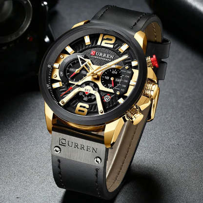 With precise timekeeping and a durable, water-resistant construction, this watch is designed for men who value both style and performance. The fashionable design and bold chronograph function elevate any outfit to the next level, while the military leather strap ensures long-lasting comfort and strength.