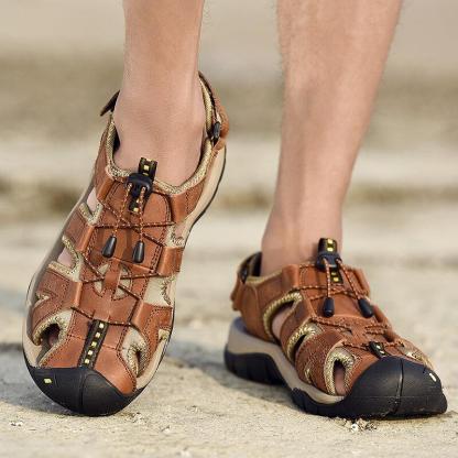 Men Cowhide Breathable Non-Slip Closed Toe Wading Casual Outdoor Sandals