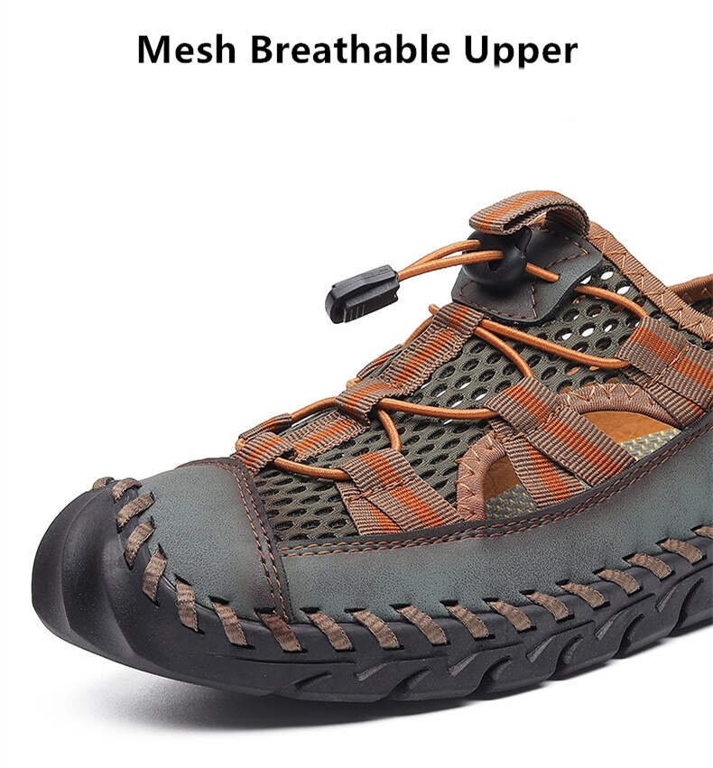Men's Sandals Closed Toe Mesh Splicing Outdoor Leather Sandals