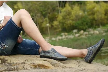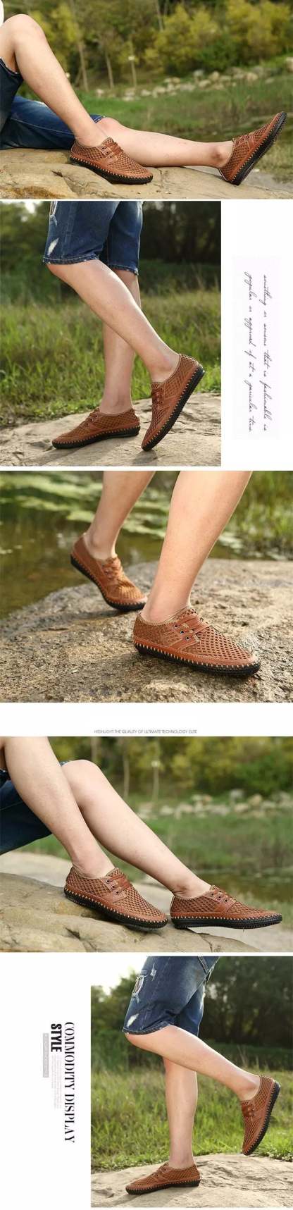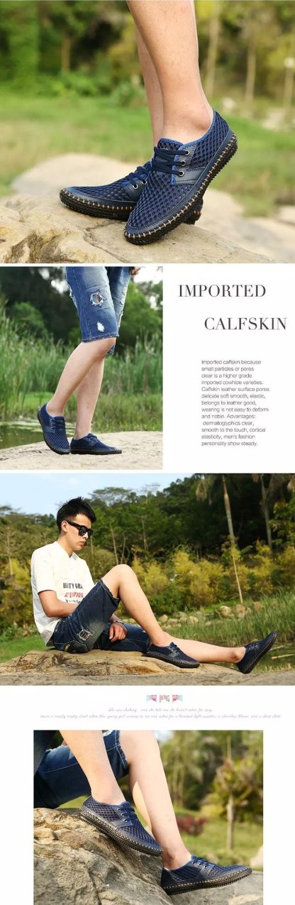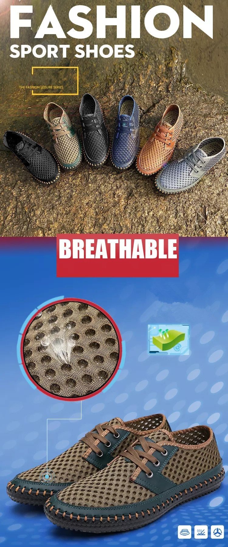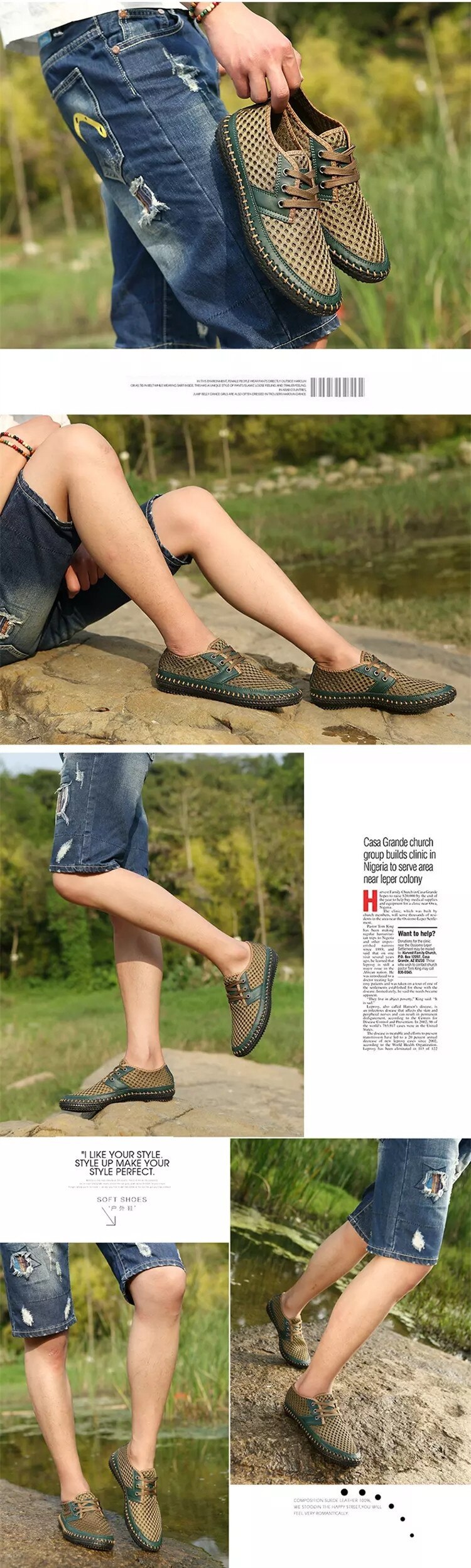 Summer Breathable Mesh Men Casual Shoes For Comfortable Handmade Men Lace-Up Loafers Men Shoes