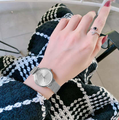 The Ultra-Thin Mesh Quartz Watch is designed for women who love a clean, modern look without extra bulk. With its minimalist round face, slim profile, and finely woven stainless steel mesh band, this watch is the definition of understated style.