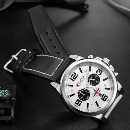 With a powerful quartz movement, shock-absorbing construction, and 3 ATM water resistance, this watch can handle any stage of the day: Business, meetings, movement. The chronograph and calendar function not only provide information – they provide structure.