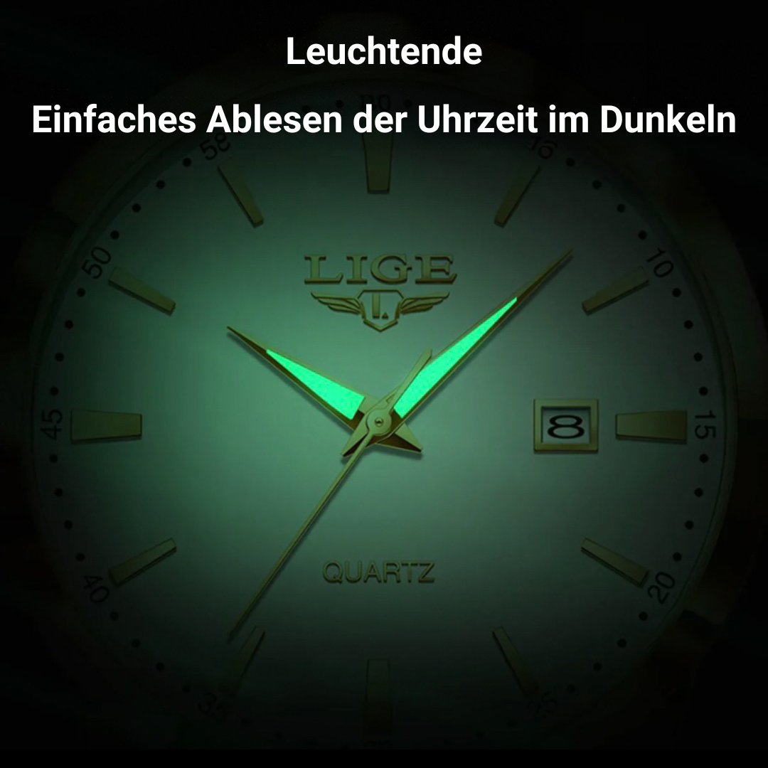 With its water resistance, shock-resistant construction, and the luminous hands, it is a reliable companion – whether in the meeting room or on unknown roads. The integrated date and week display ensures that you never lose track, even when the day is filled with dynamism.