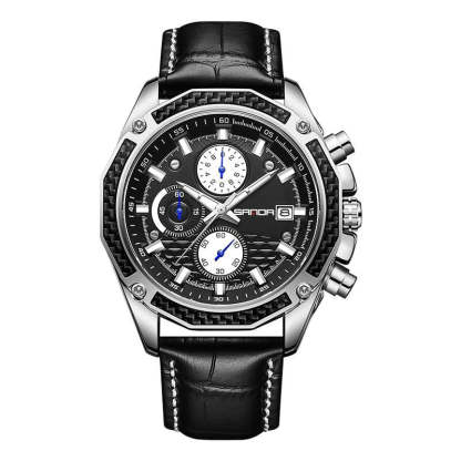 The robust genuine leather strap ensures a comfortable grip, while the sportily designed dial with calendar, chronograph, and luminous hands provides everything you need in everyday life (or on the racetrack). Thanks to its 3ATM water resistance, it stays ready for action even in rain or sweat – just like a true race car that also functions in daily life.