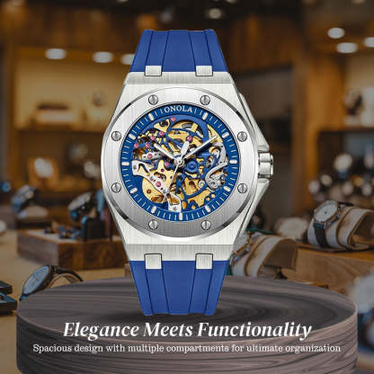 Skeleton Dial Display: Showcases internal movement with a bold, modern edge.