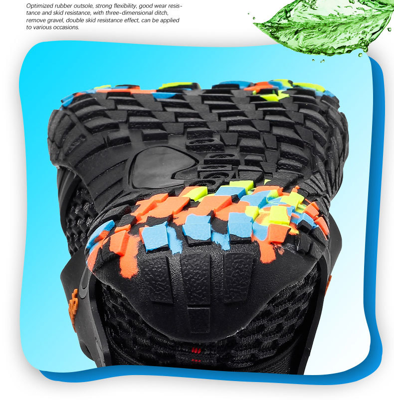 Drainage and sand removal holes are arranged on the sole to drain away silt and prevent your feet from being soaked in water, which helps with breathing and prevents your feet from feeling stuffy.