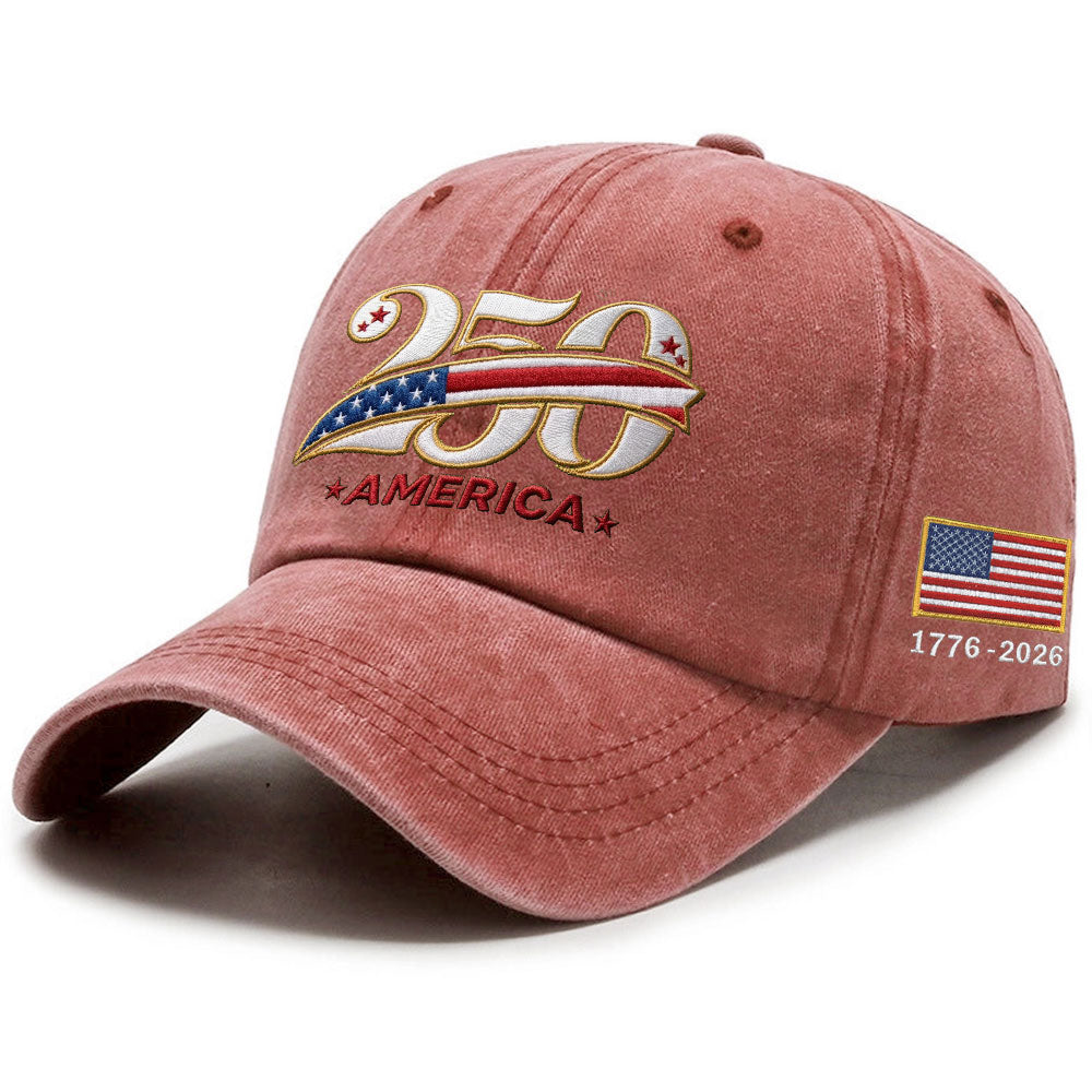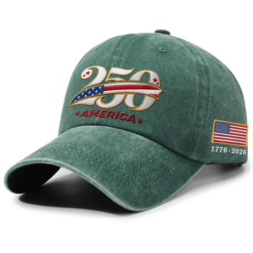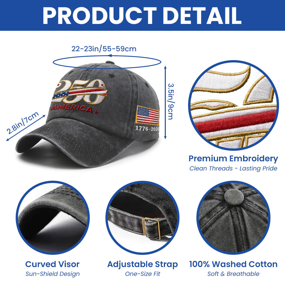 250 Years USA 1776 2026 Washed Cap, Patriotic Embroidered American Flag Product details