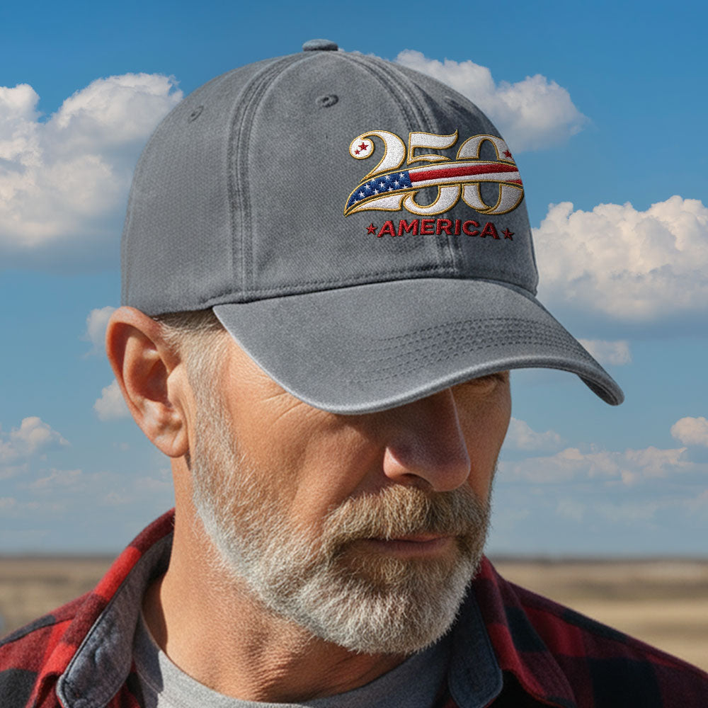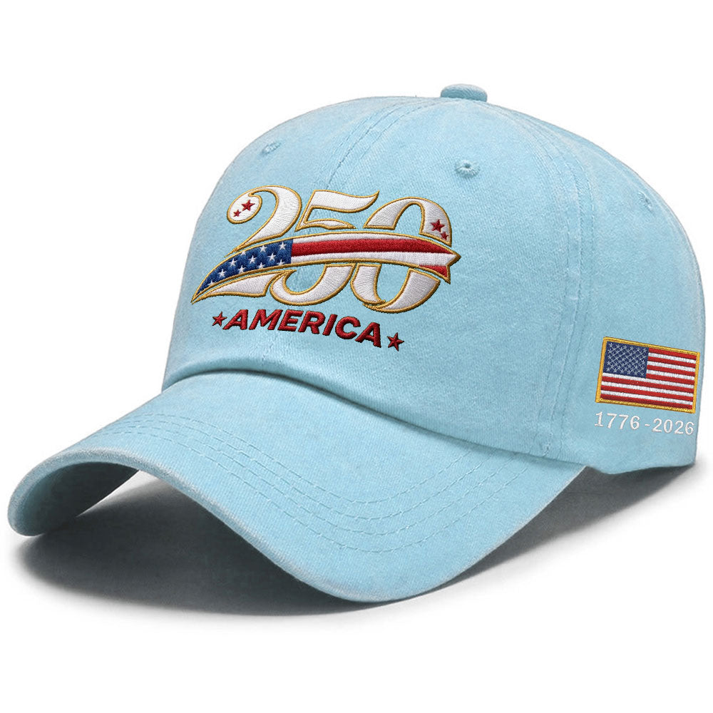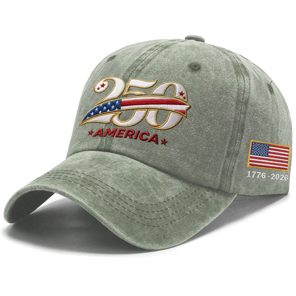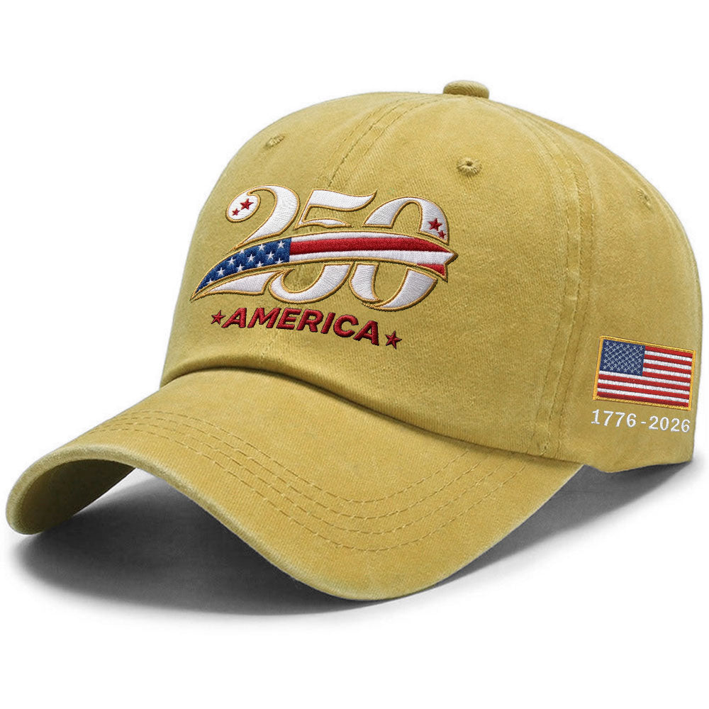 250 Years USA 1776 2026 Washed Cap, Patriotic Embroidered American Flag Product details