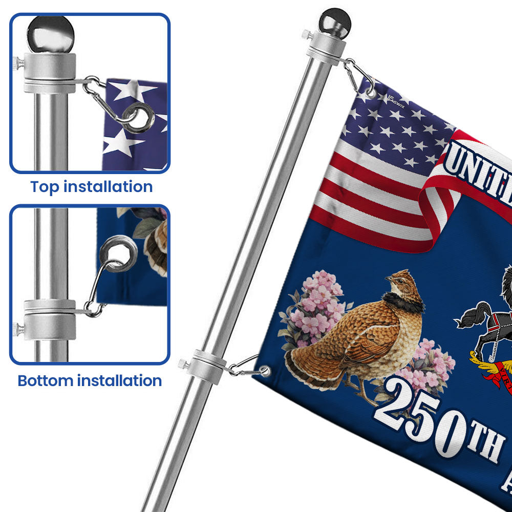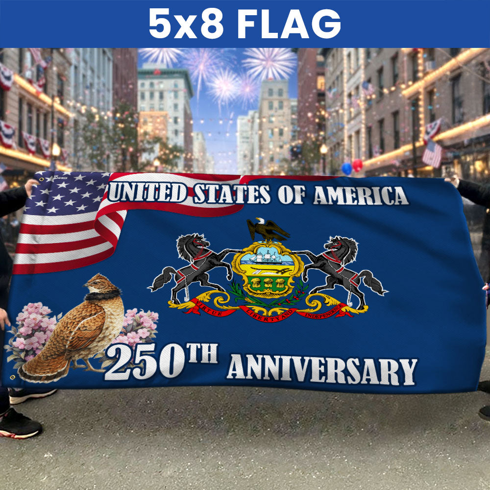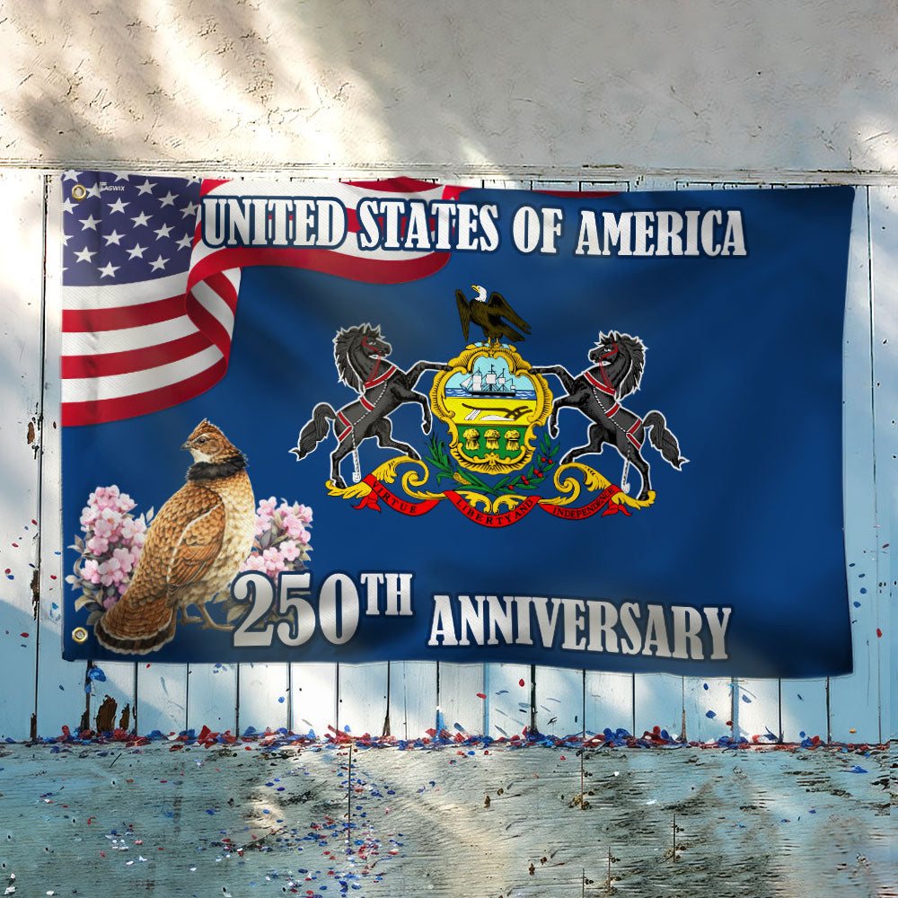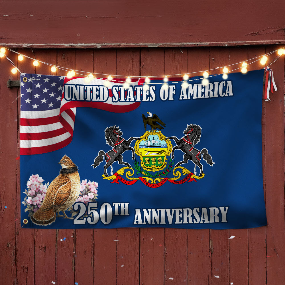 250th Anniversary Pennsylvania with Ruffed Grouse American Grommet Flag Are you looking for something to decorate your home more outstandingly or make a gift for your beloved? Our custom printed flags would be a wonderful choice for a home decor accessory or a perfect gift to give your families and friends.