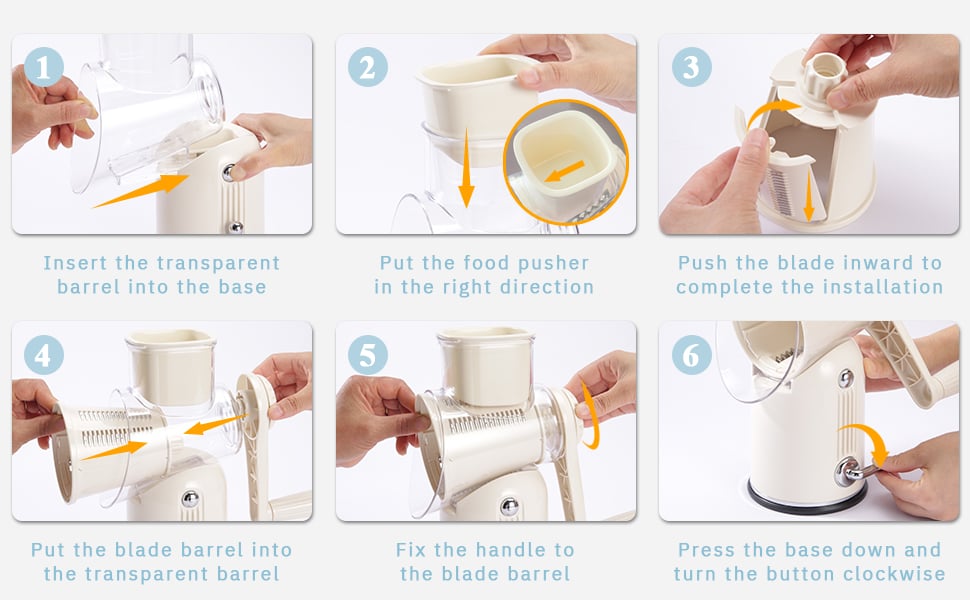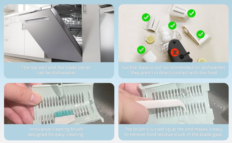 This cheese grater features a rotary design that is easy to operate, and its assembly and disassembly are also extremely convenient. It comes with a cleaning brush for added convenience in cleaning. What's even more commendable is that it can be hand-washed or placed in the dishwasher, saving you valuable time and effort, making cleaning exceptionally effortless.