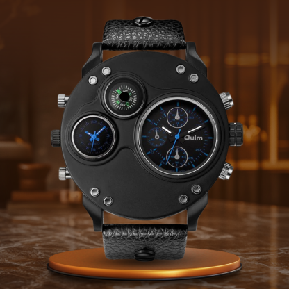 The black leather dual time zone quartz watch is the perfect companion for the modern man who appreciates both form and function. Designed with a sleek black leather strap and dual time zone display, this watch allows you to effortlessly keep track of time in two different locations, making it ideal for frequent travelers or those with busy, international lifestyles. The large, eye-catching dial ensures easy readability, while the luxurious military design adds a touch of sophistication to any outfit. Whether you're at work, traveling or having a night out, this watch is made to make a statement.