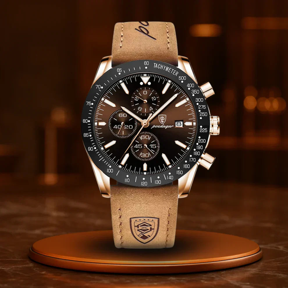 The precise quartz movement is more than just technology. It is confidence in every second. The glowing hands? A sign of people who lead in the dark. The chronograph? For those who prefer to act rather than wait.