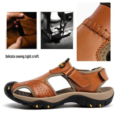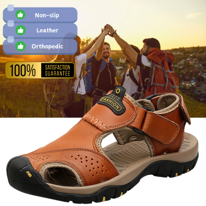 Men's Genuine Leather Sport Sandals Orthopedic Support Lightweight Non-slip Hiking Sandals