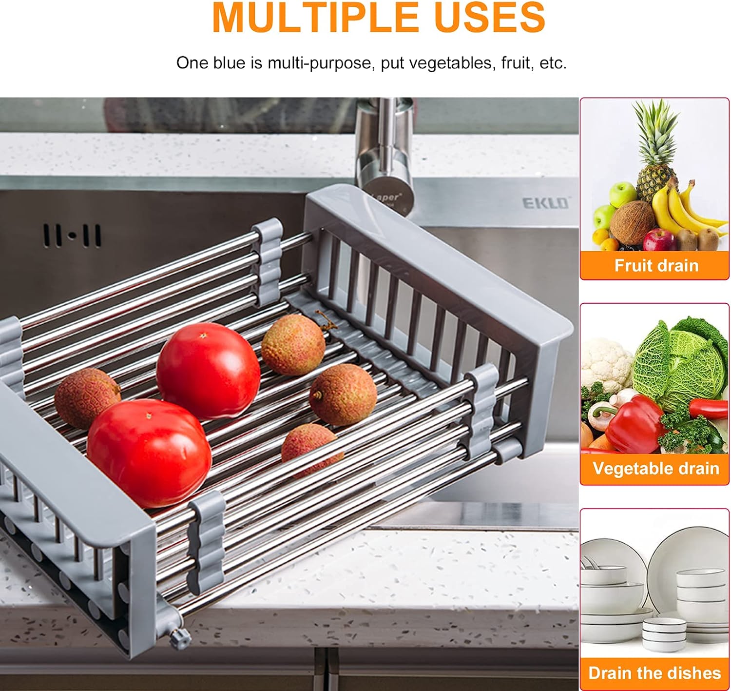 Multifunctional use - The sink drainage shelf can drain dishes or rinse vegetables and fruits. It can contain several cups and dishes at the same time. After cleaning, vegetables and fruits can also be put at the top to drain the water, comfortable to use.