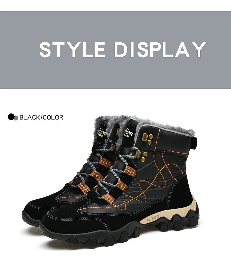 Our men's snow combat boots are designed to ensure every step they take is safe and comfortable. These boots feature high-quality genuine leather material that provides excellent waterproofing. The spacious toe design allows ample space for your feet, providing extra comfort.