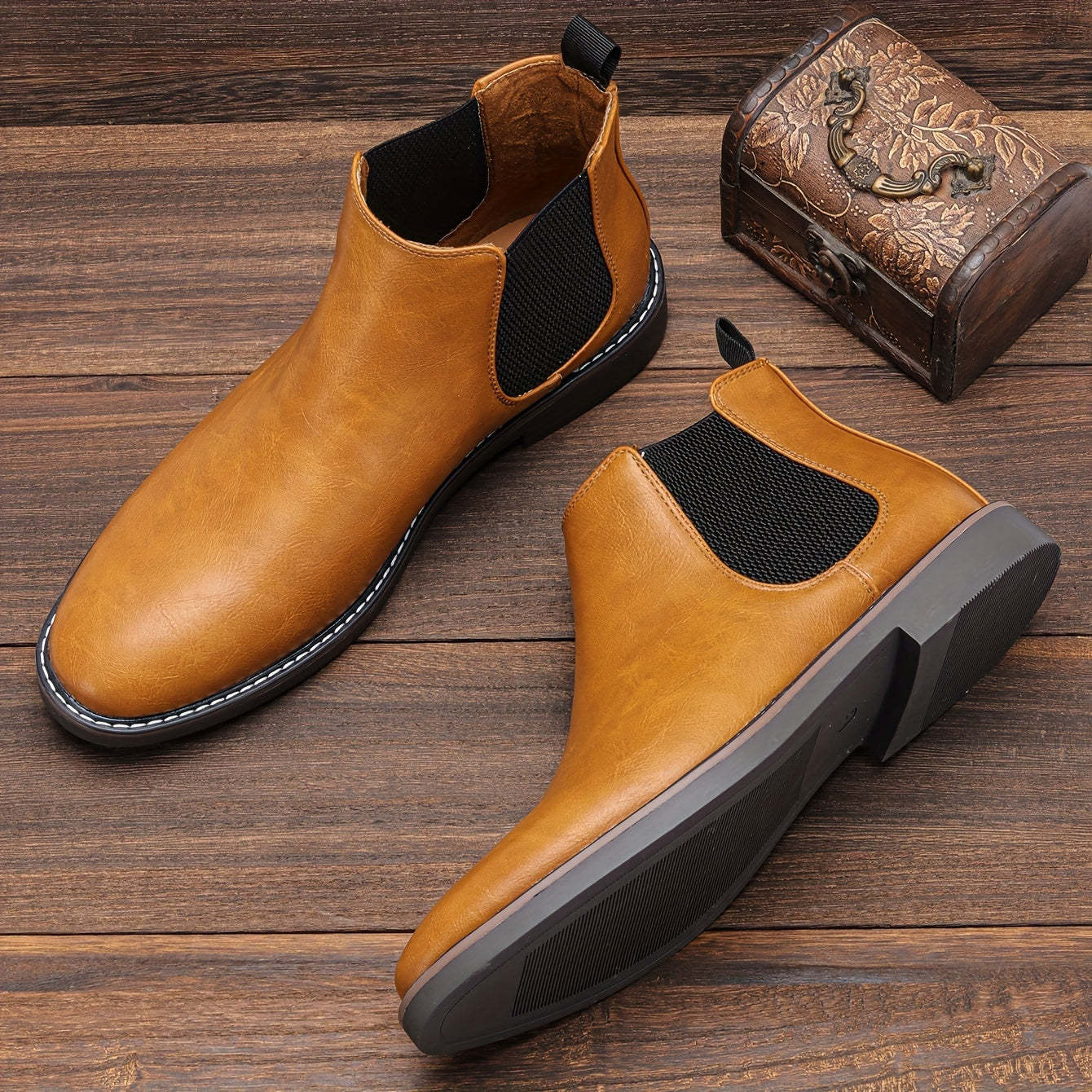 - Classic Style: Slip-on Chelsea boot design with a sleek round toe.