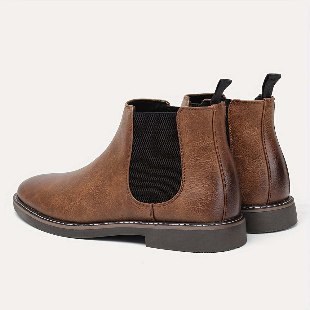 The Harrington Round Toe Chelsea Boots are designed for men who value both fashion and function. Made with high-quality faux leather and featuring a TPR sole, these boots provide a durable and comfortable option for outdoor activities. The classic slip-on Chelsea style and round toe give these ankle boots a versatile, modern look that pairs well with any casual or semi-formal outfit.