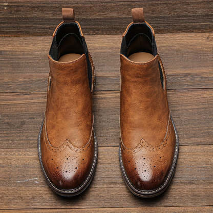 The Cambridge Wingtip Brogue Chelsea Boots combine classic brogue detailing with the timeless Chelsea boot silhouette, offering a sophisticated look for the modern man. With a high-top, slip-on design and anti-skid sole, these boots provide reliable traction and stability, making them ideal for outdoor wear across spring, autumn, and winter seasons.