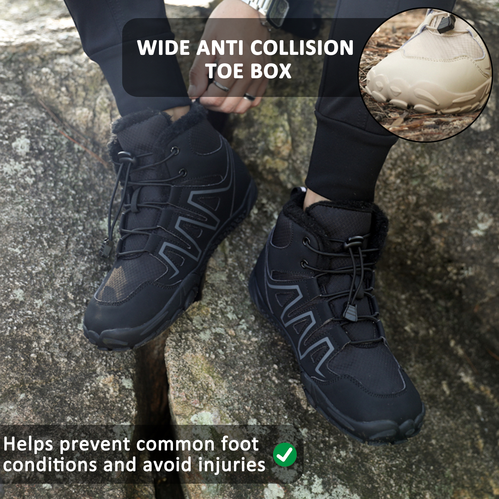 The specially designed barefoot inner design with a large toe box not only gives your foot the necessary space and perfectly adapts to the shape of your foot but also bids farewell to sore feet, ensuring your winter walks are pure comfort and joy.