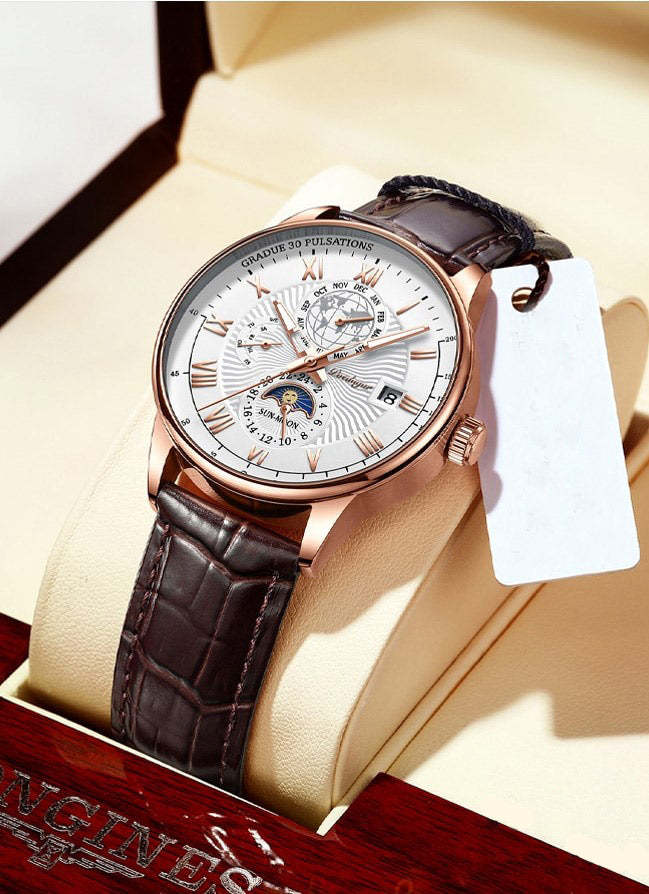 The Illuminis 40 is more than a watch – it is a modern fusion of sporty energy and refined design. With its lightweight leather strap and the three-hole movement reminiscent of the dynamic eyes of a race car, it attracts all eyes without being intrusive.