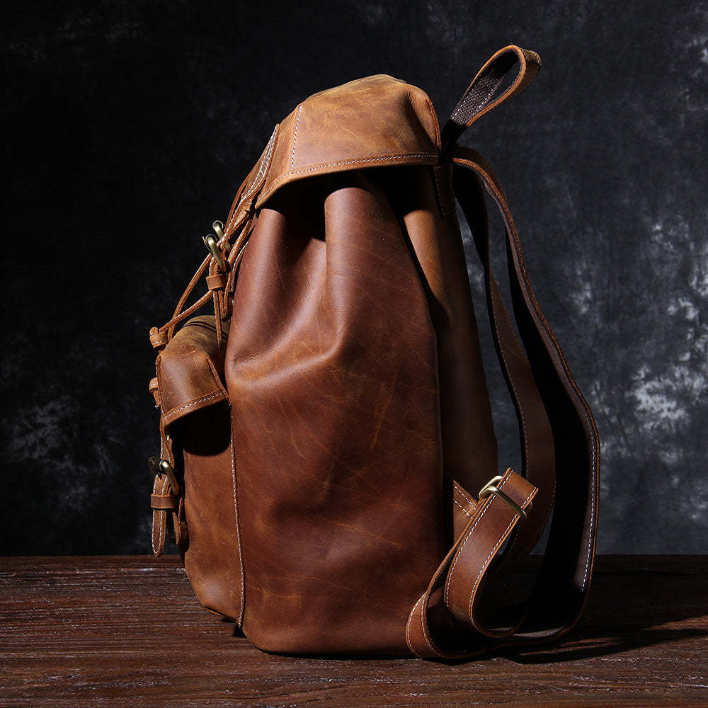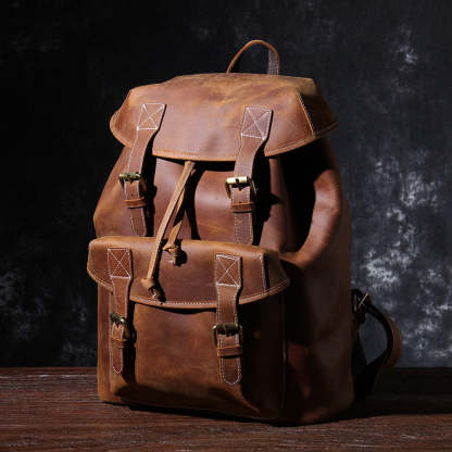 tanned leather rucksack backpack