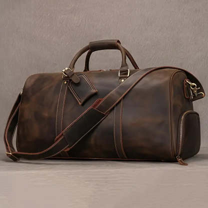 The DAKOTA Weekender is the perfect blend of classic design and practical functionality. Designed for those who appreciate a refined, vintage look, this bag elevates your travel experience with a strong presence and understated charm.