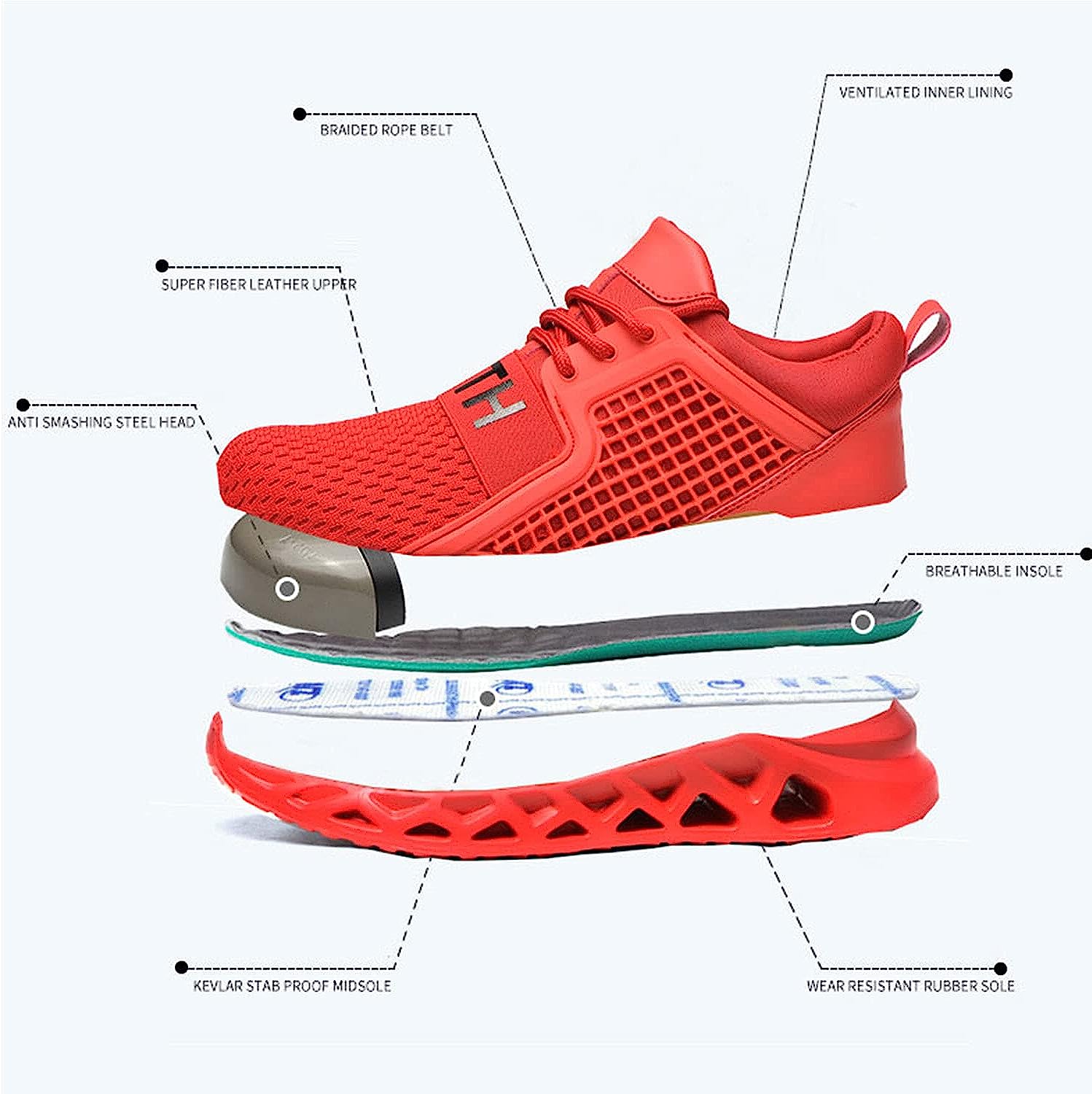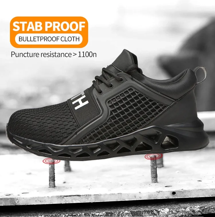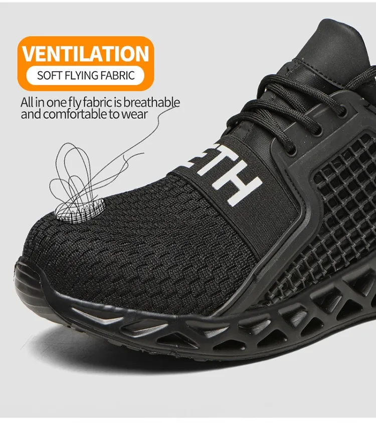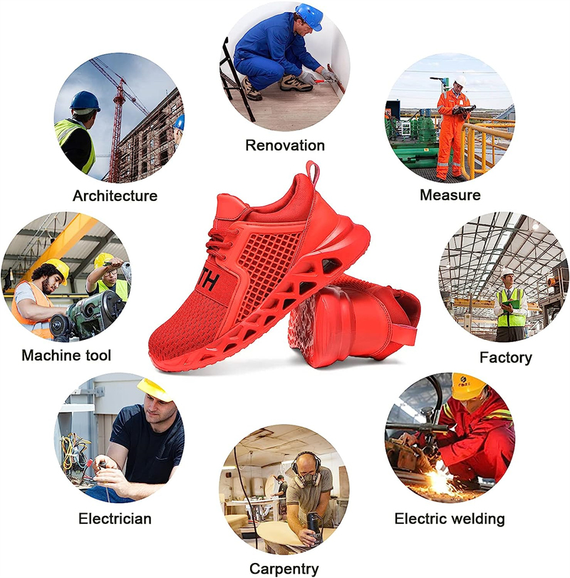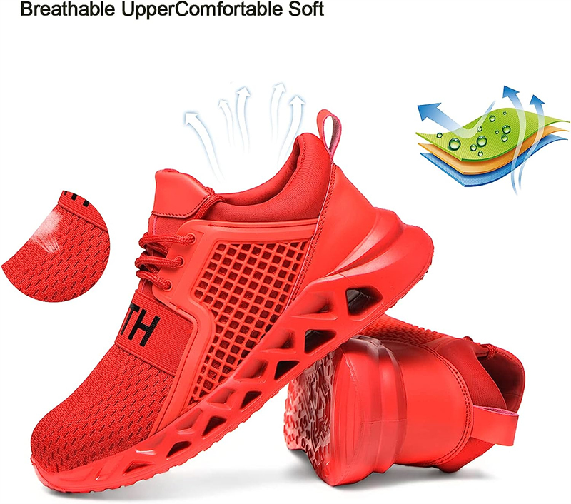 Men work shoes with lightweight midsole is built to protect your feet from being punctured by sharp objects like nails, steel bar,the special lines of the sole have a strong grip, non slip shoes for men have superior anti-skid performance, greatly enhance the safety.