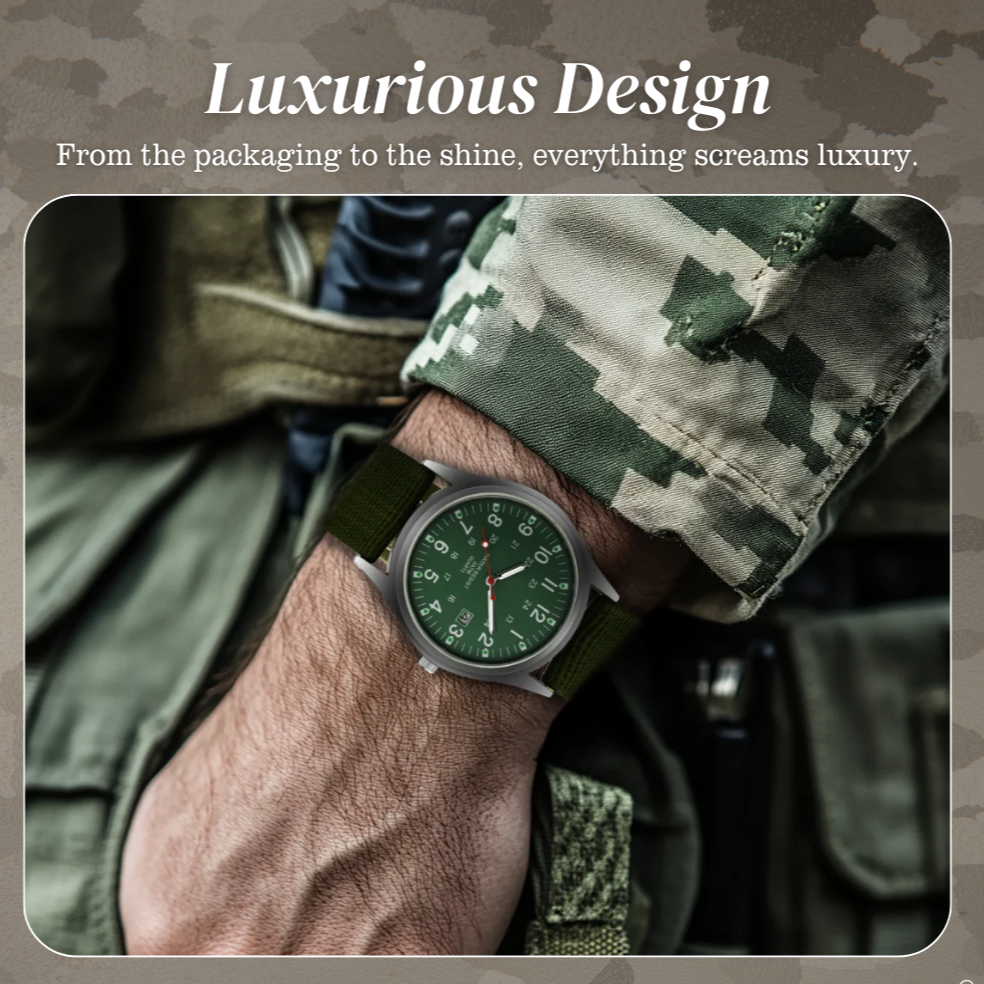 The Mateo watch channels a rugged, military-inspired design with a modern edge. Featuring a tough canvas strap and a clean, utilitarian face, it's made for those who appreciate both style and resilience.