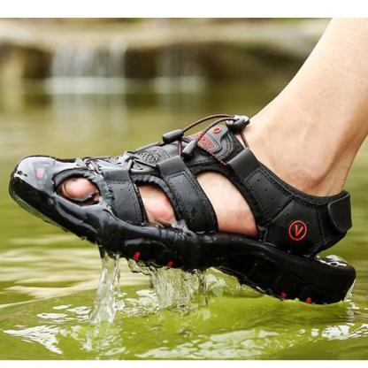 Men Genuine Leather Summer Sandals Fashion Slippers
