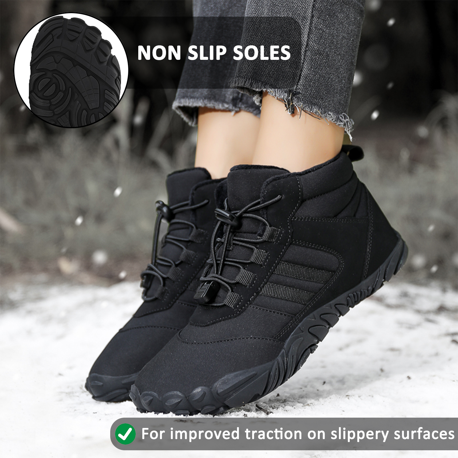 Everyday winter shoes deform your feet and toes, which can often lead to discomfort and deformities. With the Kaegreel Barefoot Shoes, you not only guarantee maximum freedom of movement for your toes, but also protection for your joints thanks to a flat, optimally cushioning sole. Thus you get back the healthy & natural movement that nature intended for you.