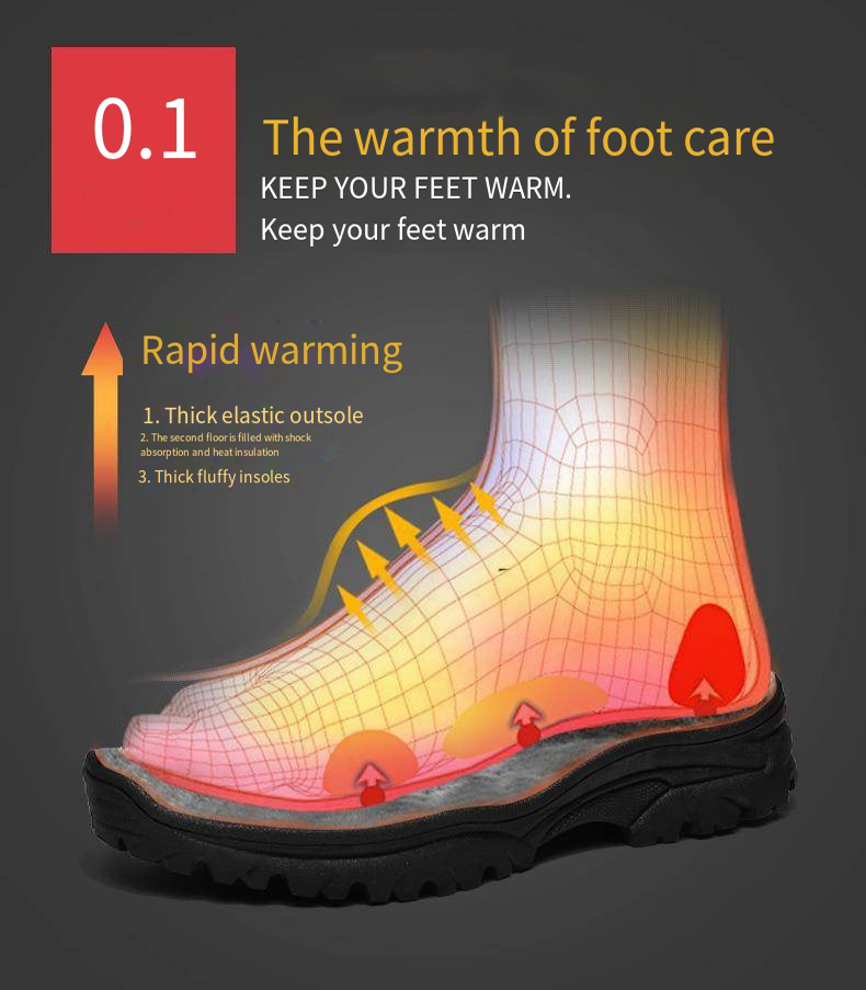Our snow hiking boots feature advanced heating technology that quickly provides warmth once you put them on. They ensure rapid insulation, keeping your feet warm even in extremely cold conditions.