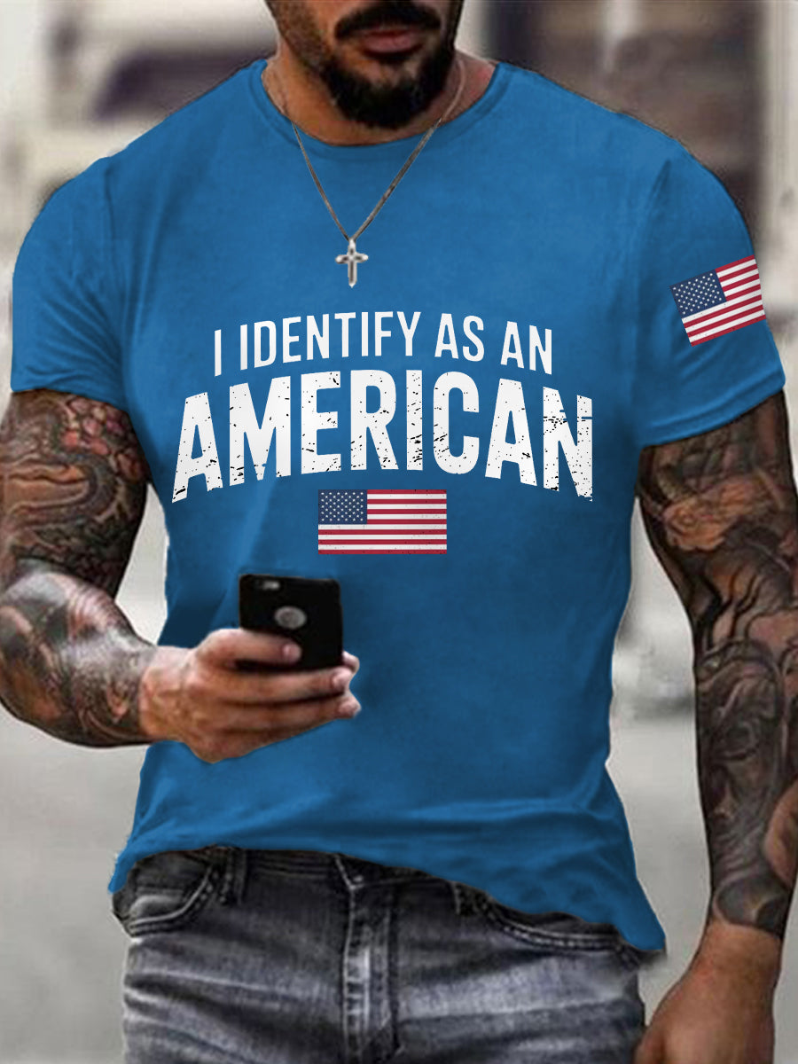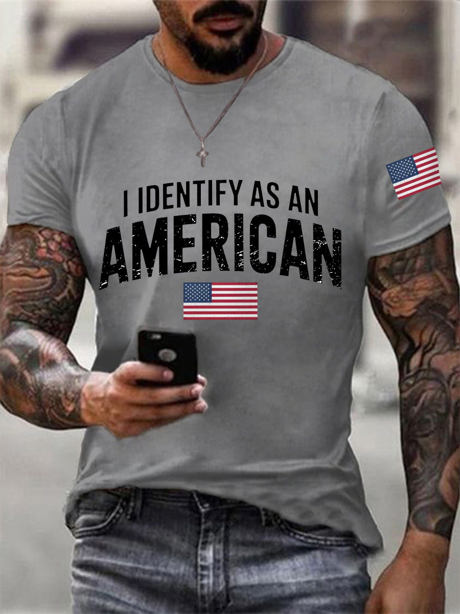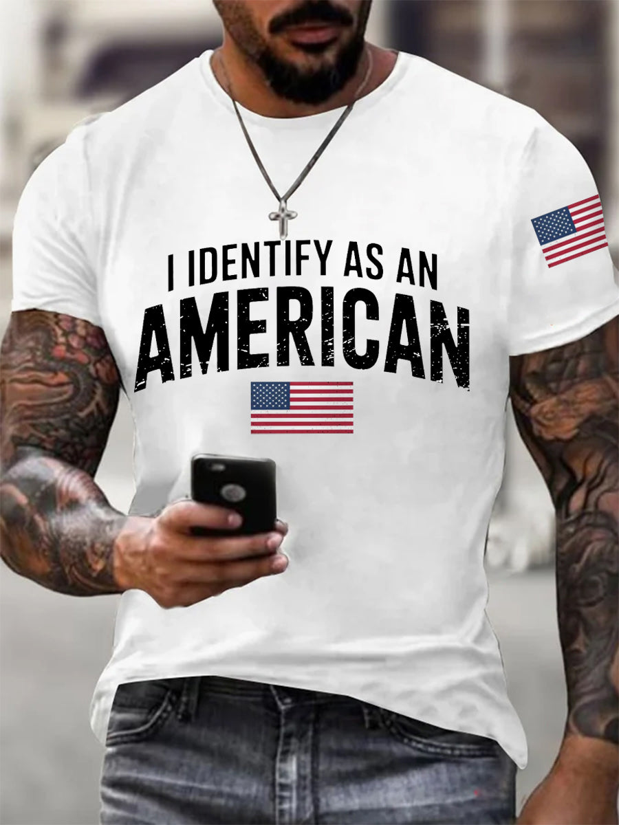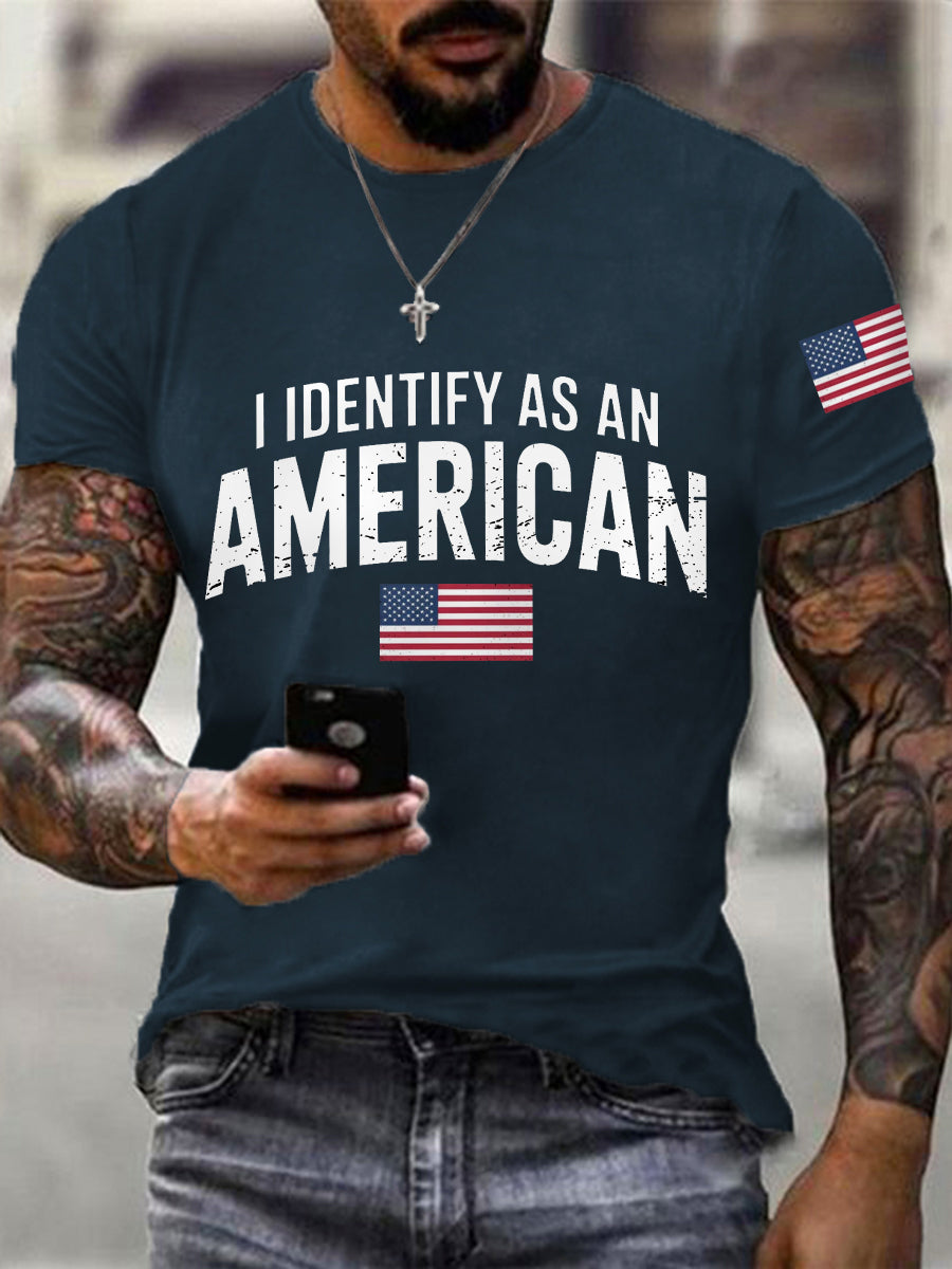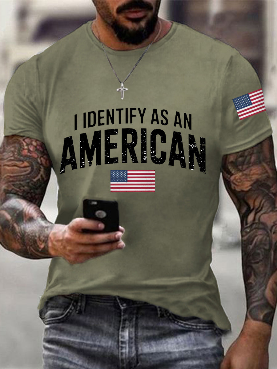 Men's I Identify As An American USA Flag Patriotic Gift Print Casual Tee