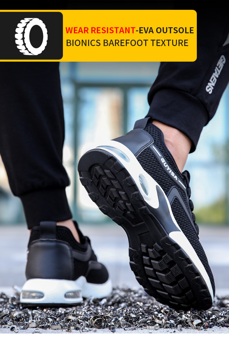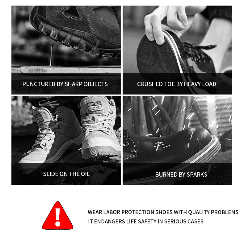 Steel toe work shoes use upgraded and widened European standards steel toe cap.The indestructible steel toe cap has the effect of resisting pressure and impact, providing good safety protection and effectively protecting the toes from being hurt by heavy objects.