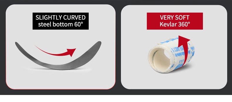 Kevlar midsole provides strong protection from sharpobjects such as ron filings and nails.Kevlar midsole is lighter and softer than traditional steel midsole, achieving the comfort same as a sneaker and reducing stress on the foot when working.