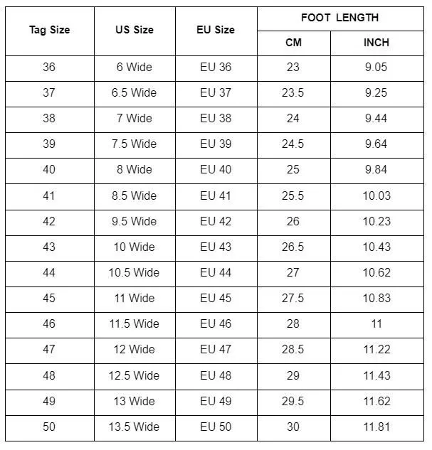 Refer to our detailed size chart and measure your feet following our guide. If unsure, contact us for personalized assistance.
