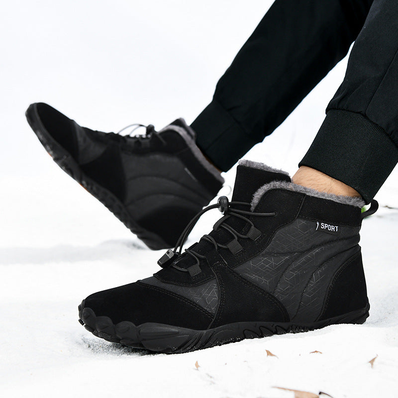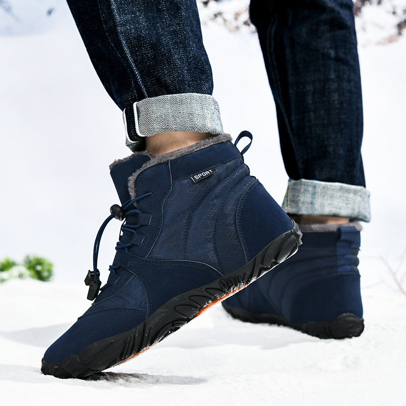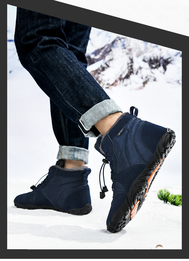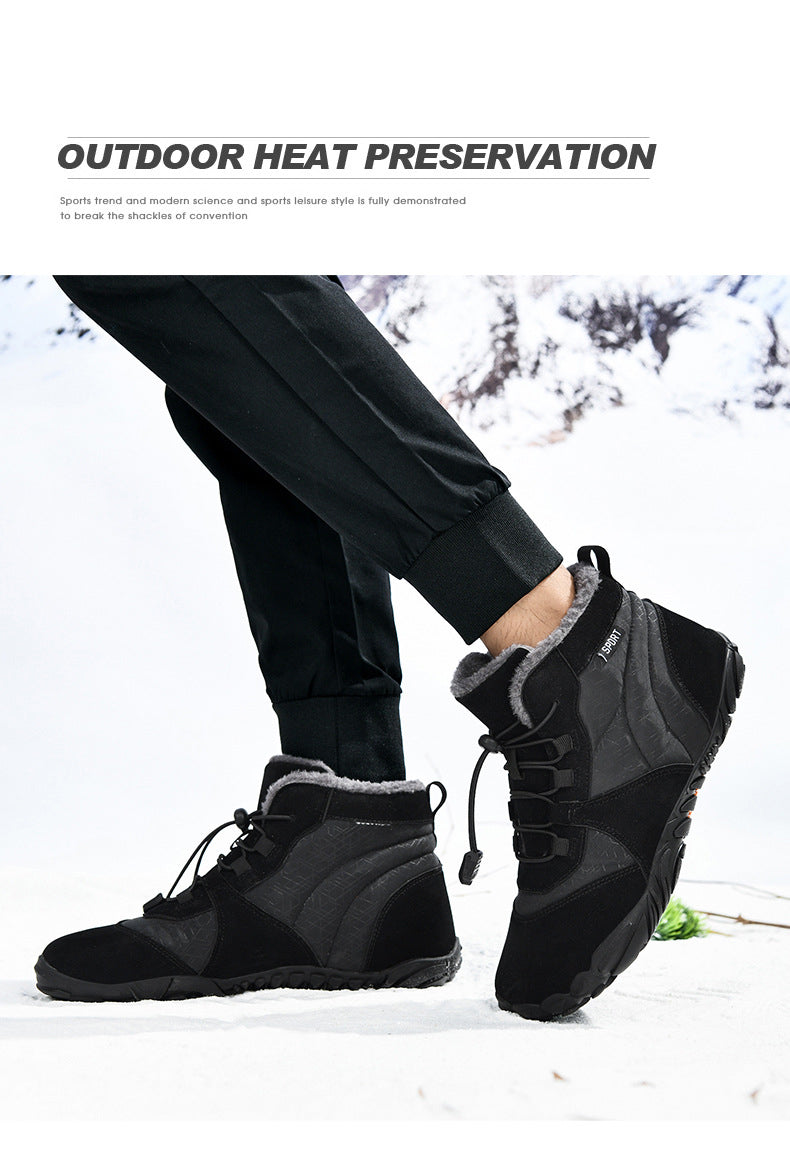 Men's Outdoor High-top Cotton shoes Unisex Barefoot shoes Work shoe Snow Boots Warm Plus Velvet Thickened Mid-tube Hiking Winter shoes