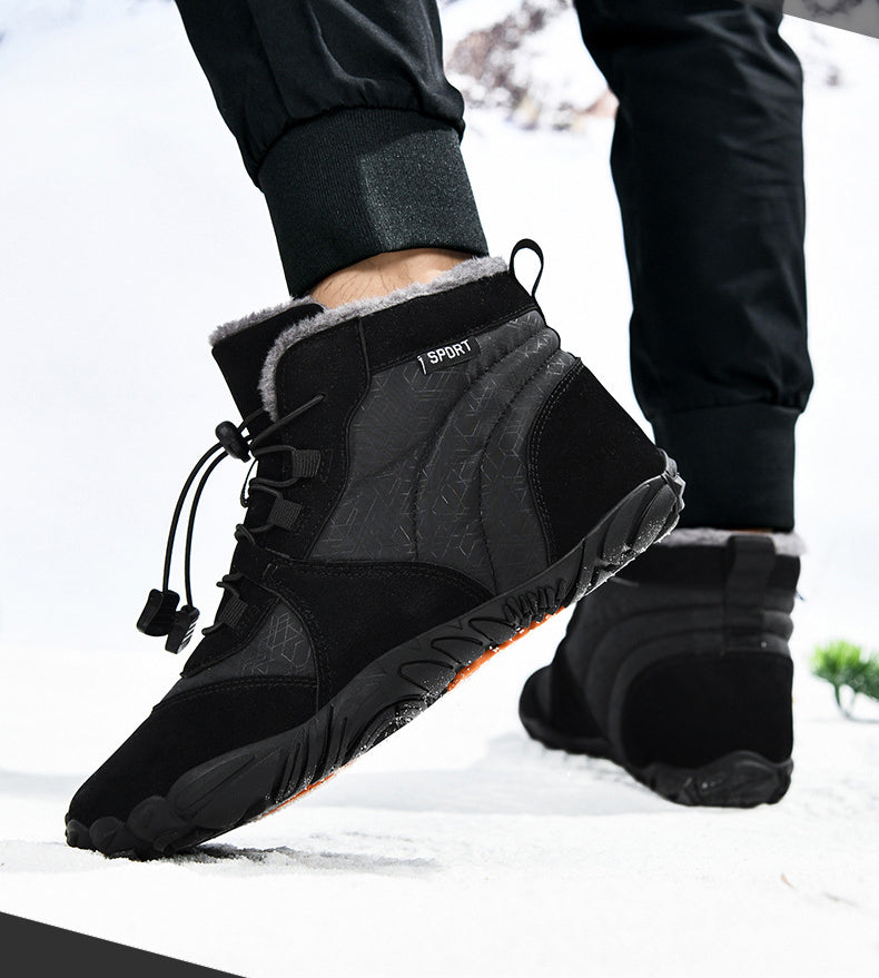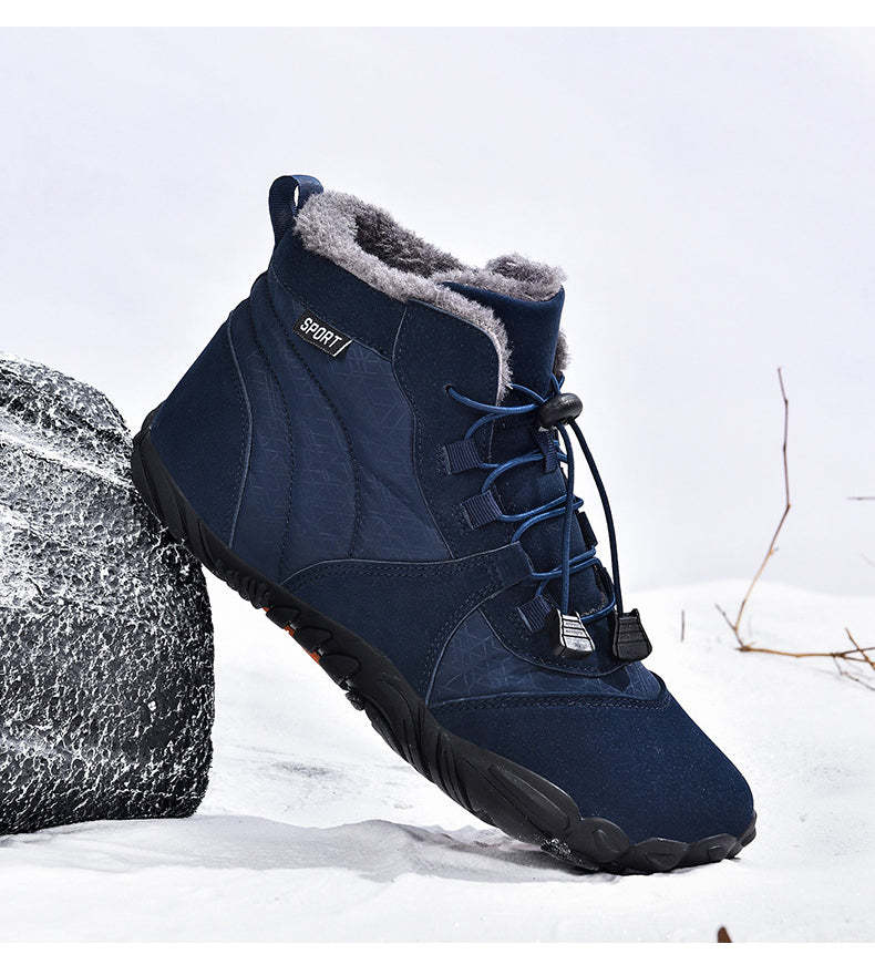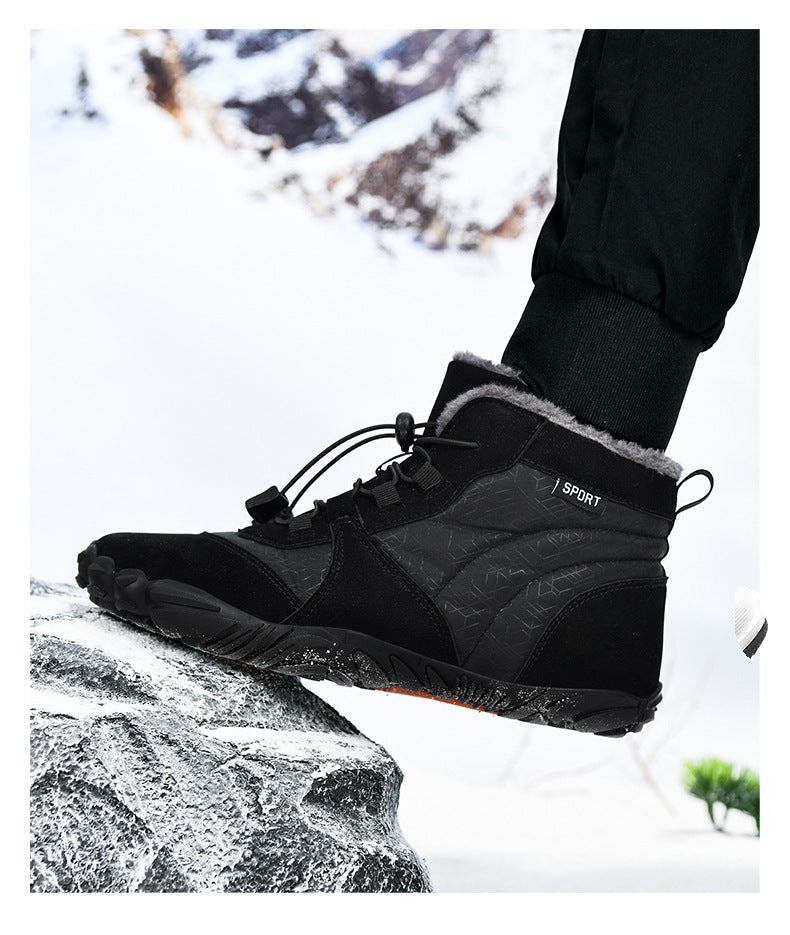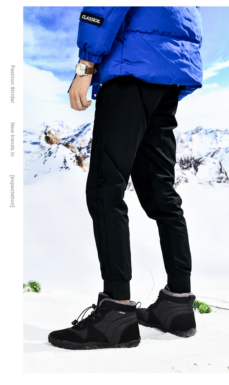 Men's Outdoor High-top Cotton shoes Unisex Barefoot shoes Work shoe Snow Boots Warm Plus Velvet Thickened Mid-tube Hiking Winter shoes