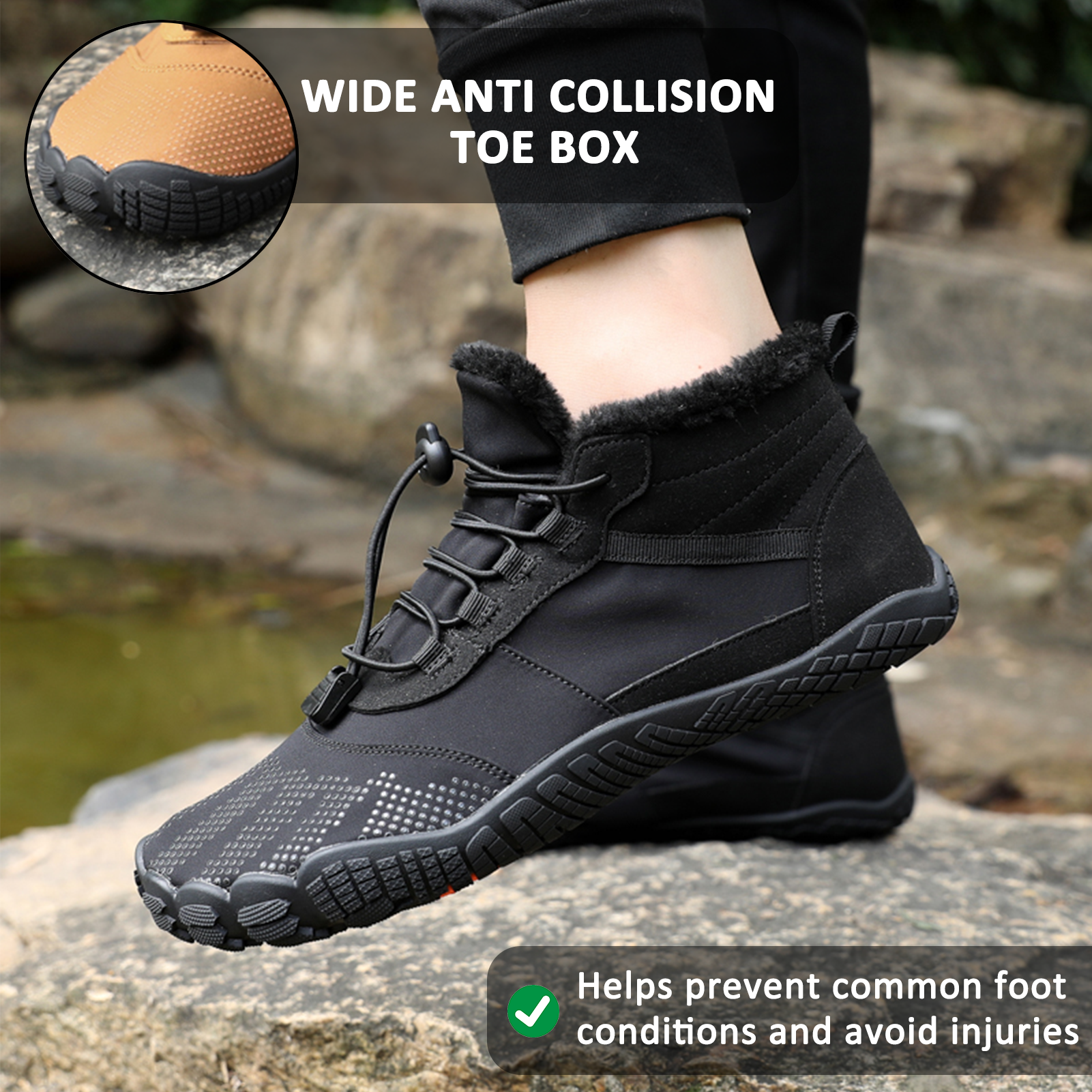 Men's Winter Outdoor Velvet Hiking Shoes, Five-finger Cotton Shoes, Sports Cycling Shoes, Warm and Thickened Non-slip Waterproof Snow Boots