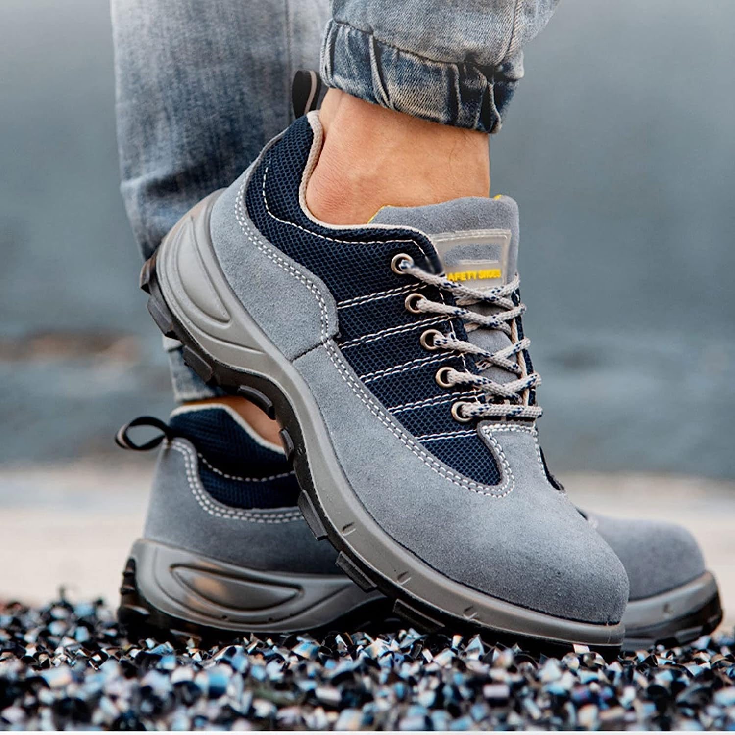 Men work shoes with lightweight midsole is built to protect your feet from being punctured by sharp objects like nails, steel bar,the special lines of the sole have a strong grip, non slip shoes for men have superior anti-skid performance, greatly enhance the safety.