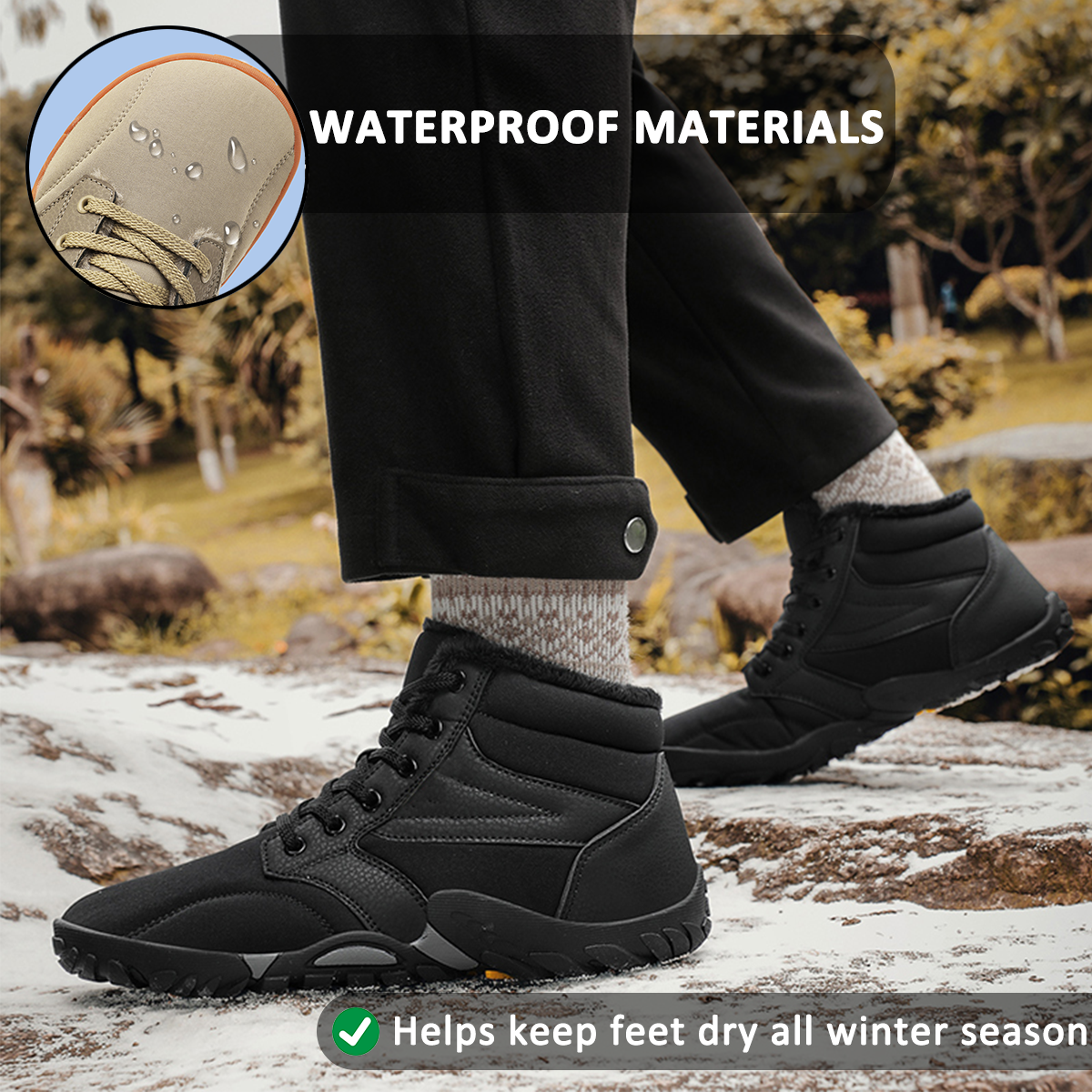 Snow Boots Winter Warm Mid-Tube Hiking Shoes Footwear Non-slip & Waterproof Winter Barefoot Shoe (Unisex)