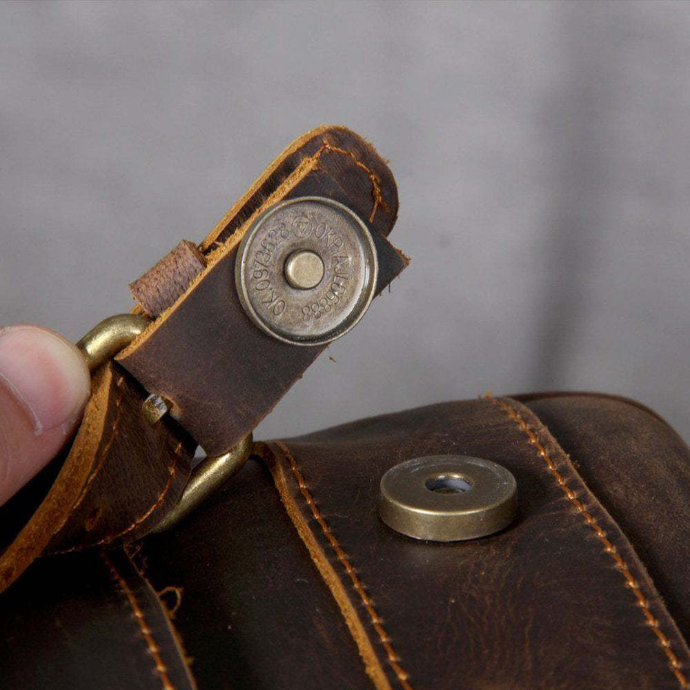 • The exterior boasts three zippered pockets, providing convenience and security while using public transport: a small pocket on the front for quick-access essentials, a larger pocket beneath the leather flap for enhanced protection against theft, and a back pocket for your most valuable items.