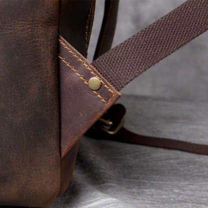 beautiful leather carry-all backpack with sturdy stitching and webbing
