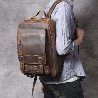 RESILIENT: Made from full-grain leather, the finest part of cowhide, you won’t find a more durable bag at this price. This backpack is built to withstand wear, tear, and weather, lasting for years while developing a distinctive patina over time.