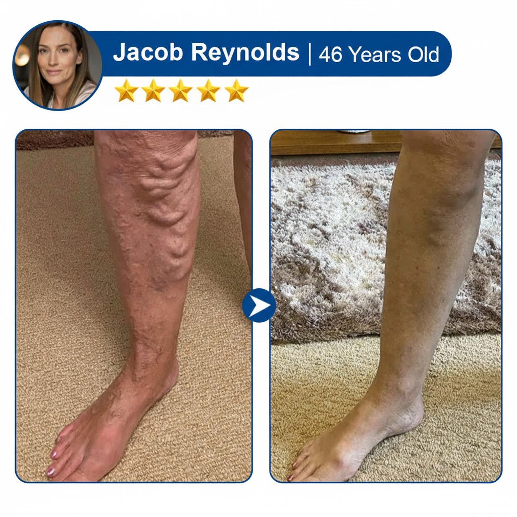 ✓ 92% reduction in visible varicose veins and leg fatigue within 14 days