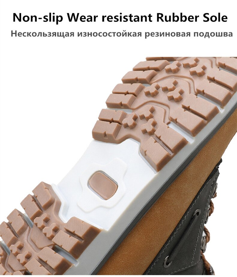 The boots outsole offers excellent grip and anti-slip performance. The rubber outsole provides excellent shock absorption and flexibility, allowing you to navigate various terrains with ease. Whether it's climbing, running, jumping in the summer, or cycling, fishing, and walking in the snowy winter, you won't slip!